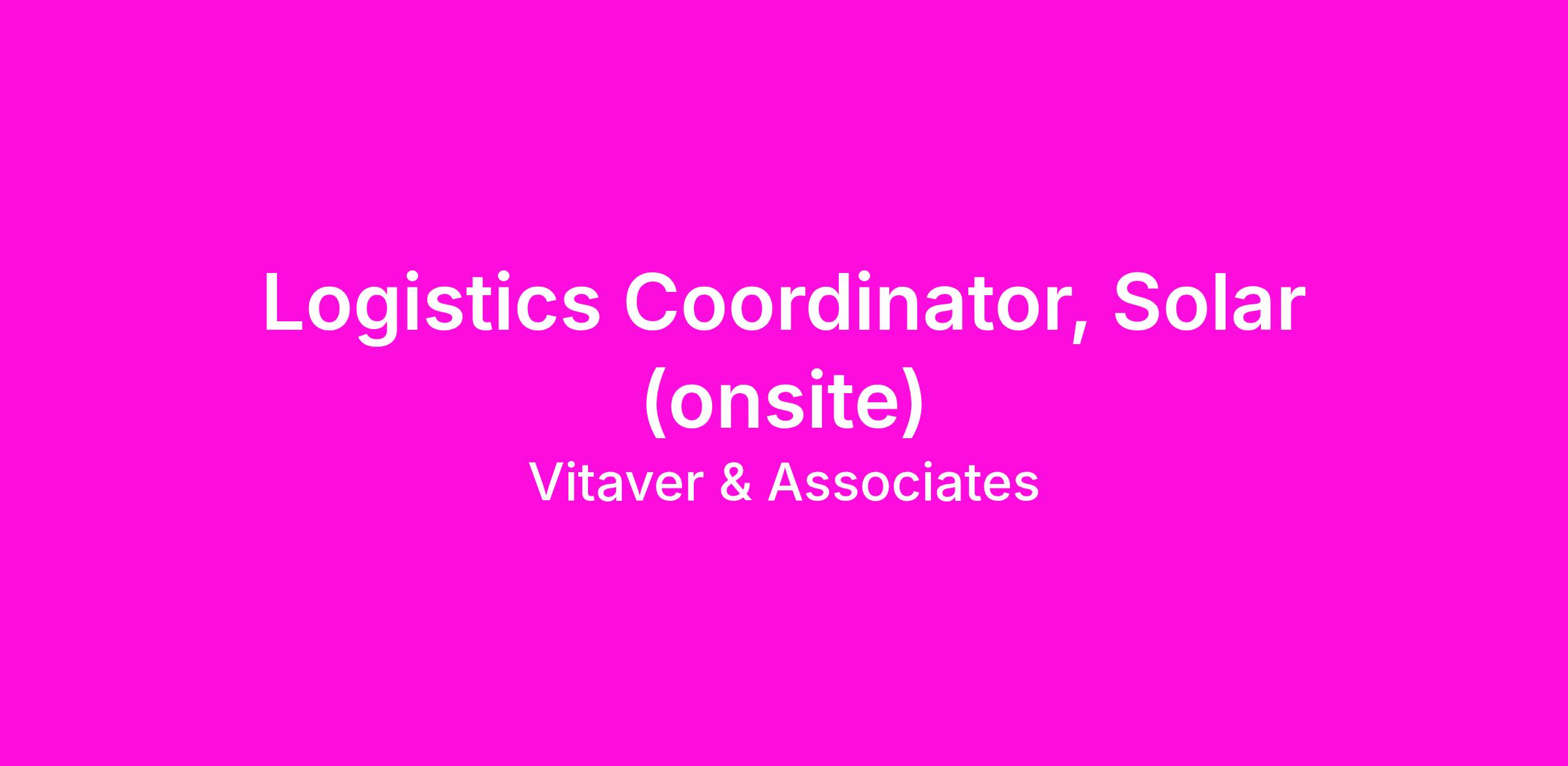 14491 - Logistics Coordinator, Solar (onsite) – Cottle County / Knox County, TX