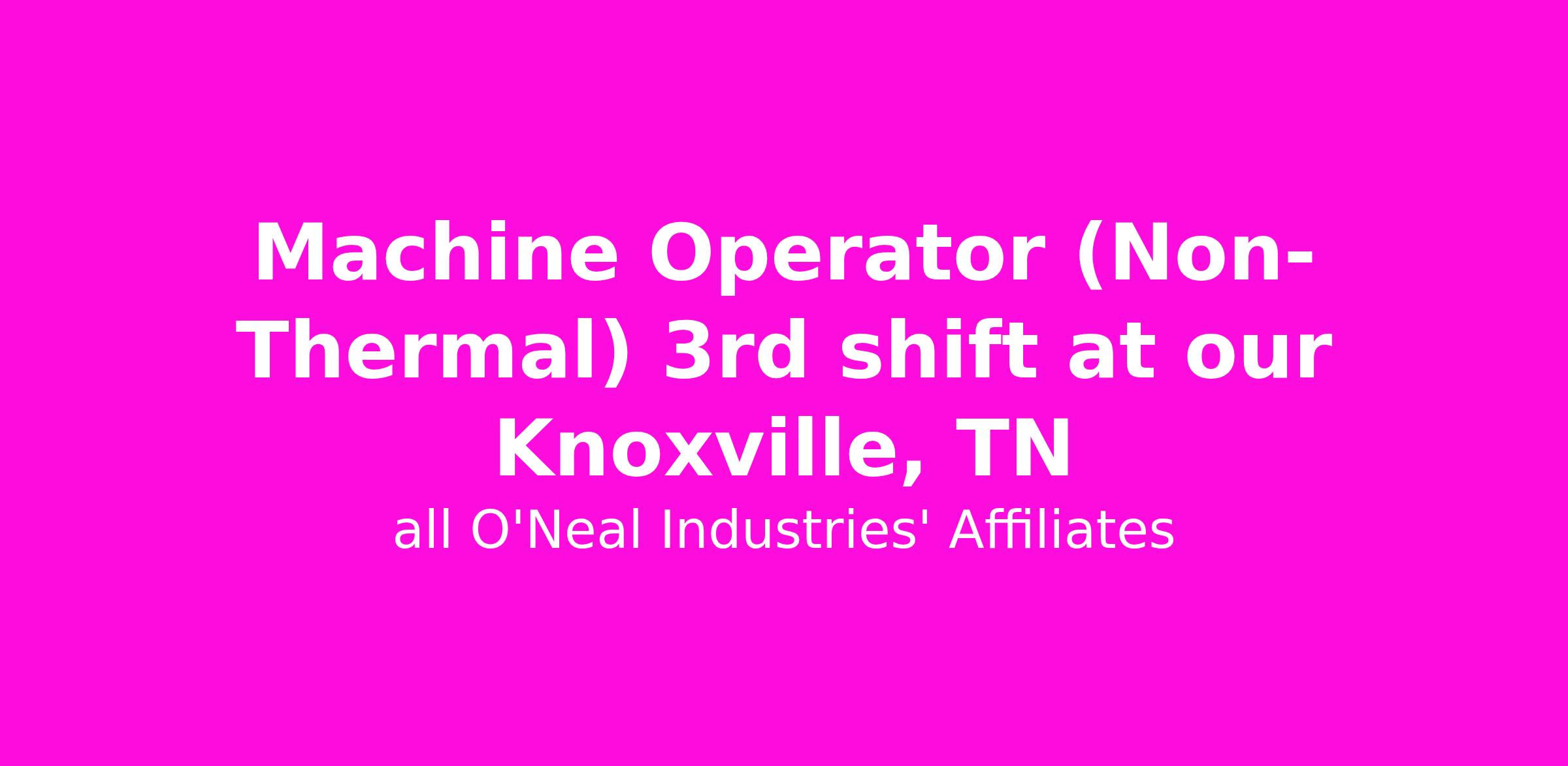 O'Neal Steel currently has an opening for a (1st Shift) Machine Operator (Non-Thermal) at our Knoxville, TN facility.