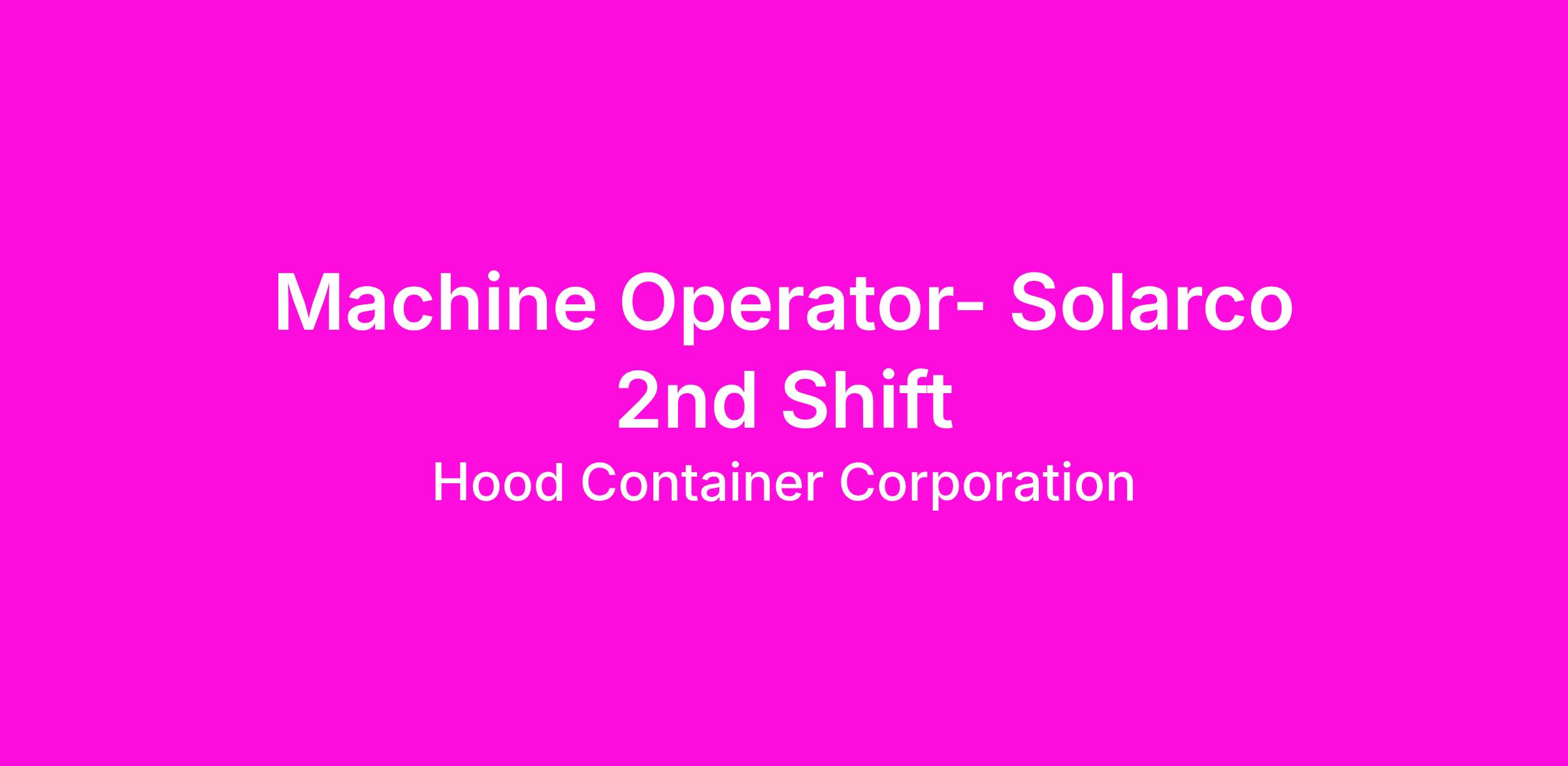 Job Title: Solarco Operator