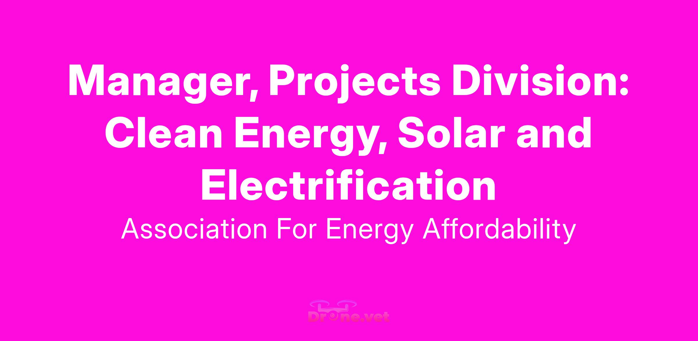 Job Title: Manager, Projects Division: Clean Energy, Solar and Electrification