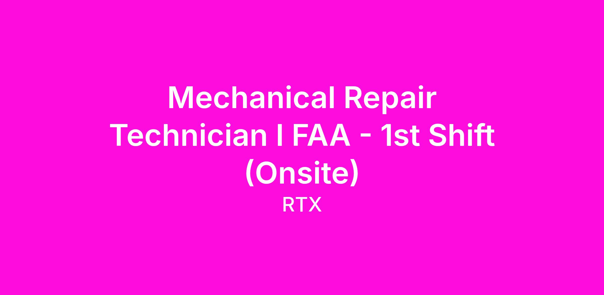 Mechanical Repair Technician I FAA - 1st Shift (Onsite)