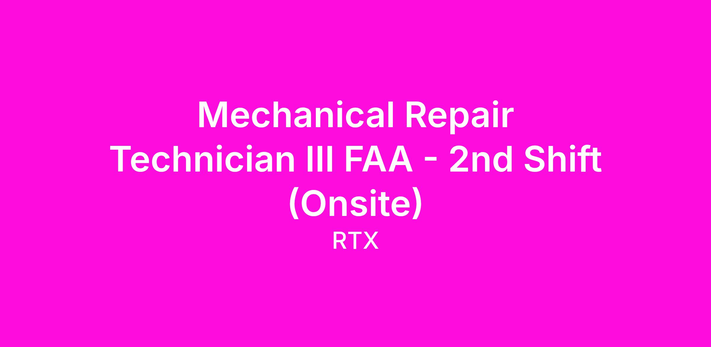 Mechanical Repair Technician III FAA - 2nd Shift (Onsite)
