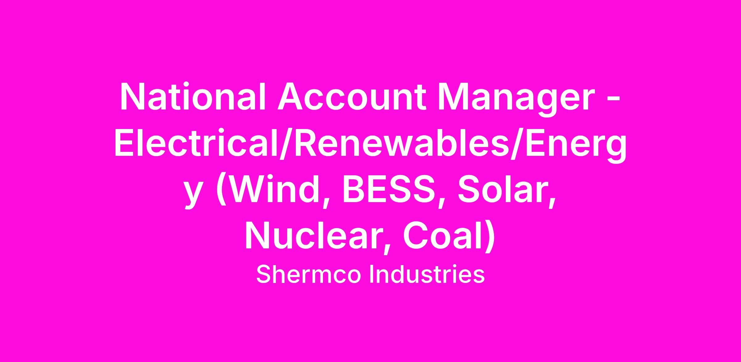 Shermco Industries is seeking a skilled national account manager to oversee and manage client relationships on a national basis. In this role, you will act as the senior account representative for the company and work with our national clients and partners in Renewables/Energy. A minimum of 5 years’ experience in a regional or national account manager position selling electrical/power or engineering related services/PLC to the Renewables/Energy sector (Coal, Solar, Wind, BESS, Nuclear, etc.). You must possess excellent interpersonal skills, confidence, and collaboration skills and the ability to lead a team of salespeople in managing accounts across the country. A top-notch national account manager will bring skills as a negotiator, problem solver, and thought leader to the table. Ideally you will reside in Auburn, WA or the Midwest (IL, IA, KS, MI, MN, NE, MO, OH). Travel is 50%.