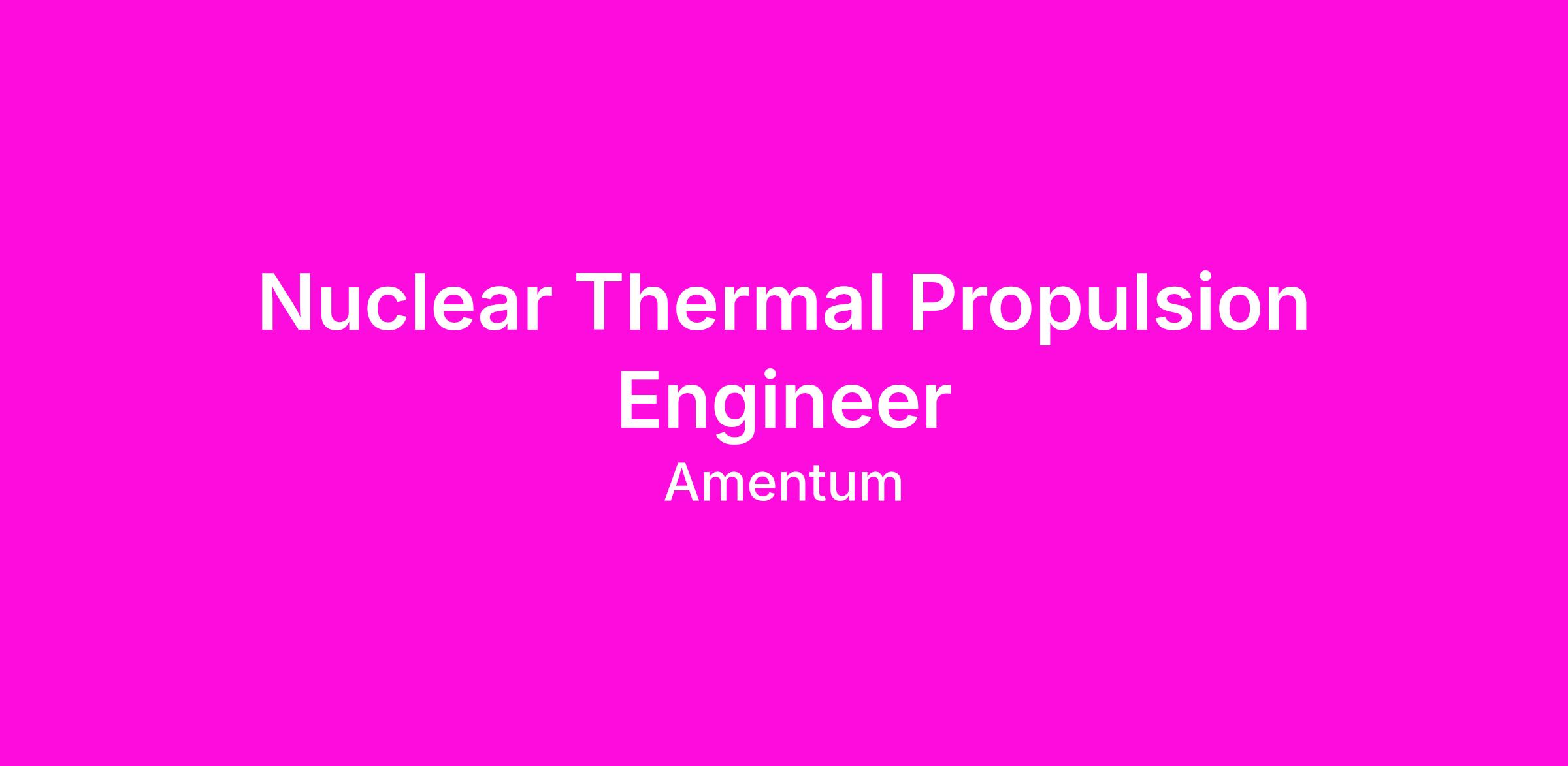 ASED is seeking a well experienced candidate for the position of Nuclear Thermal Propulsion Subject Matter Expert (SME) in support of the Propulsion Systems and Modeling Branch, located at Marshall Space Flight Center (MSFC). As a Nuclear Thermal Propulsion SME, the candidate will work in a highly integrated team leading and mentoring engineers in advising, strategizing, and developing best in class NTP modeling and simulation capabilities in support of the SNP project office. Additionally, this position will be part time with the option for remote work.