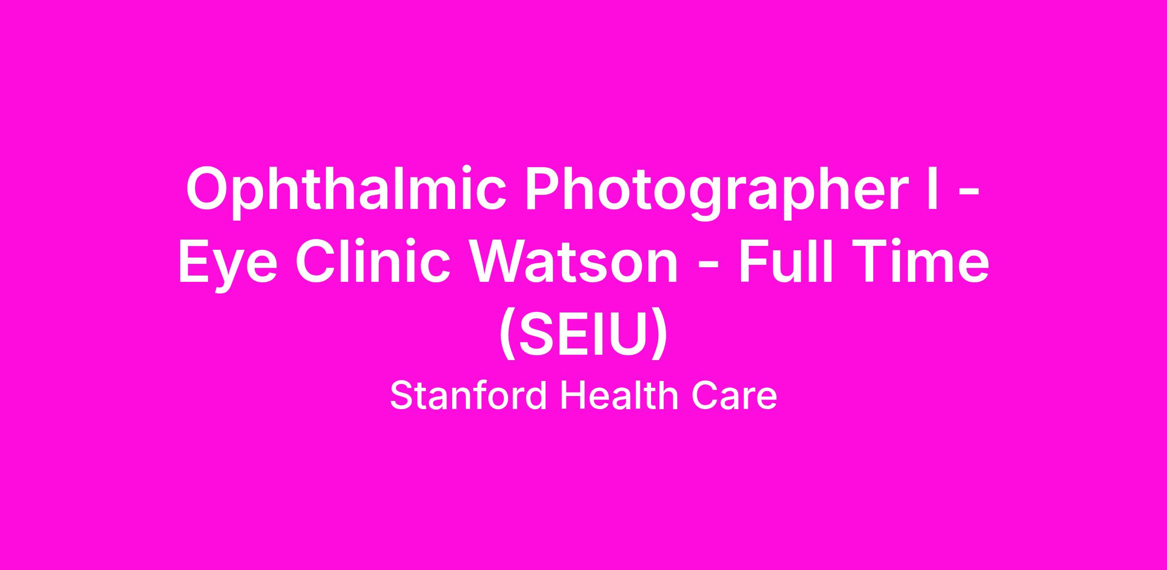 This is a Stanford Health Care job.A Brief OverviewProvide ophthalmic and general imaging needs for patient care and/or projects. As an integral part of the Department of Ophthalmology, the Ophthalmic Photographer I provides photography and media services for patient care, clinical trials, and research.