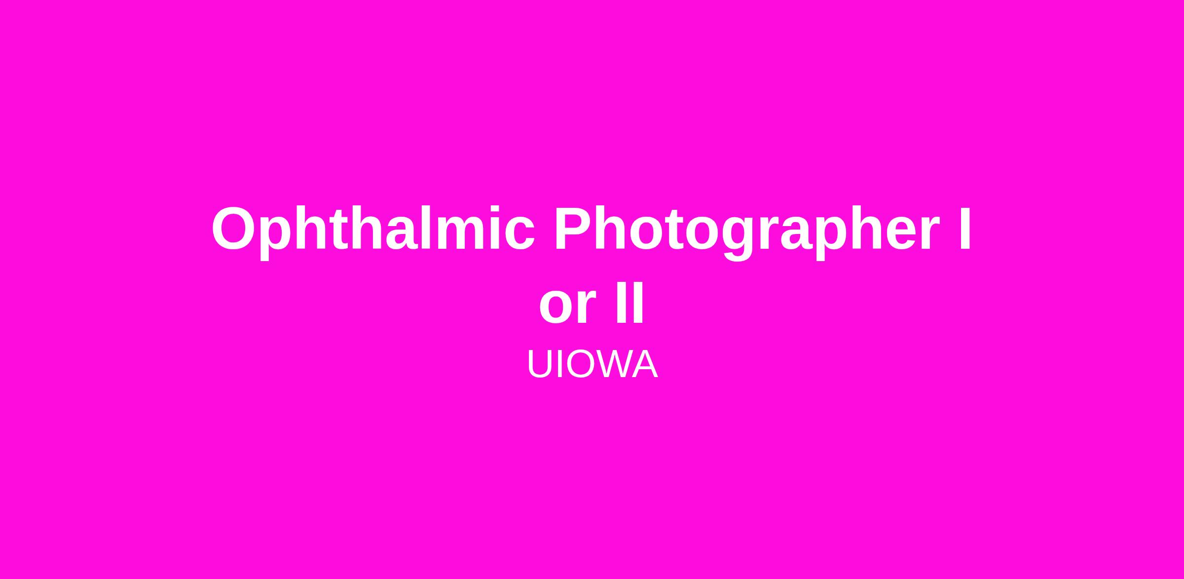 University of Iowa Health Care, Department of Ophthalmology and Visual Sciences, is seeking a 100% Ophthalmic Photographer II (PT38; 45) to perform ophthalmic diagnostic photography and all other aspects of clinical teaching and research imaging as well as to assist in the design and implementation of the imaging aspects of research in ophthalmology.