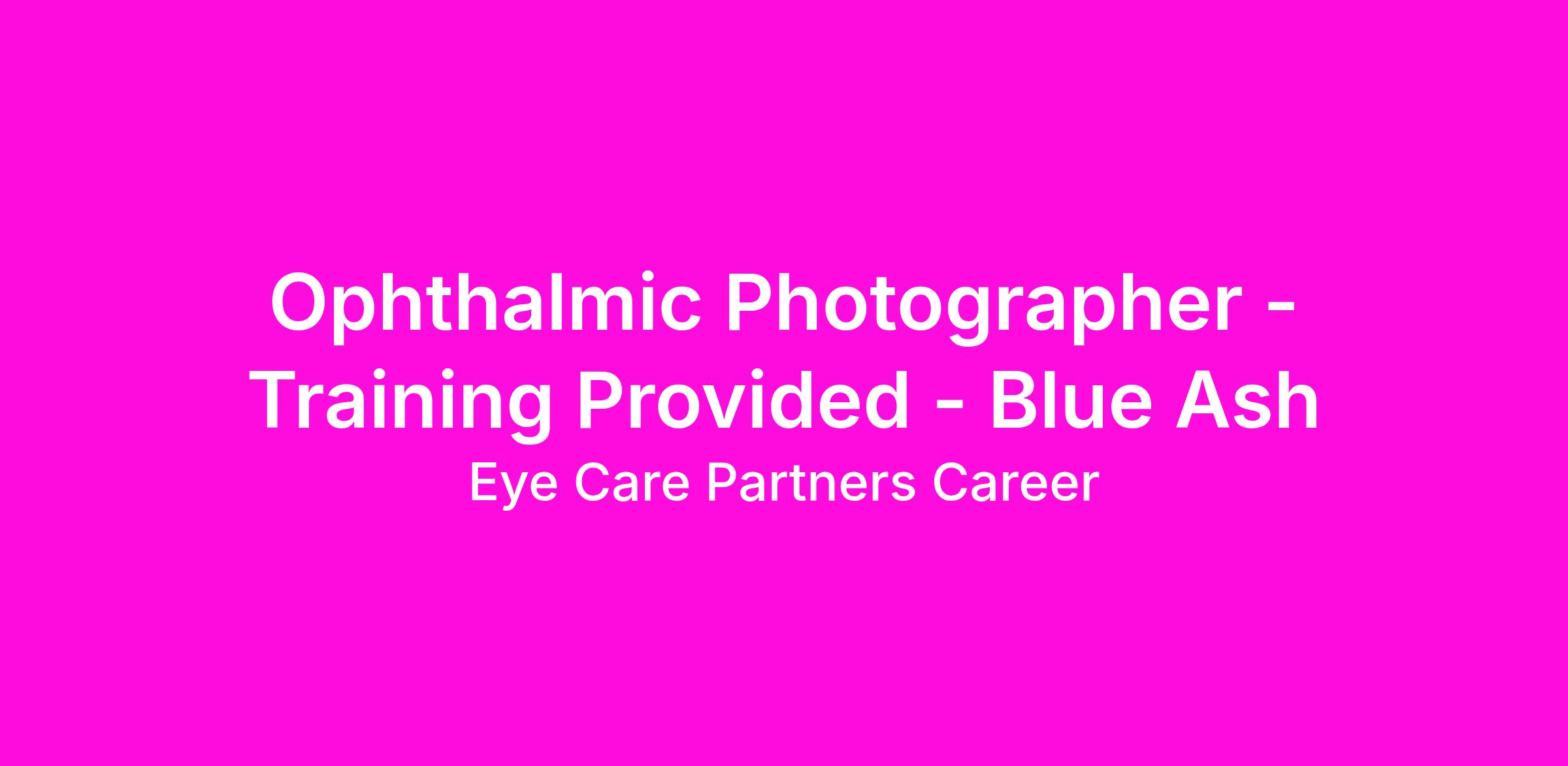 Ophthalmic Photographer - Training Provided - Blue Ash