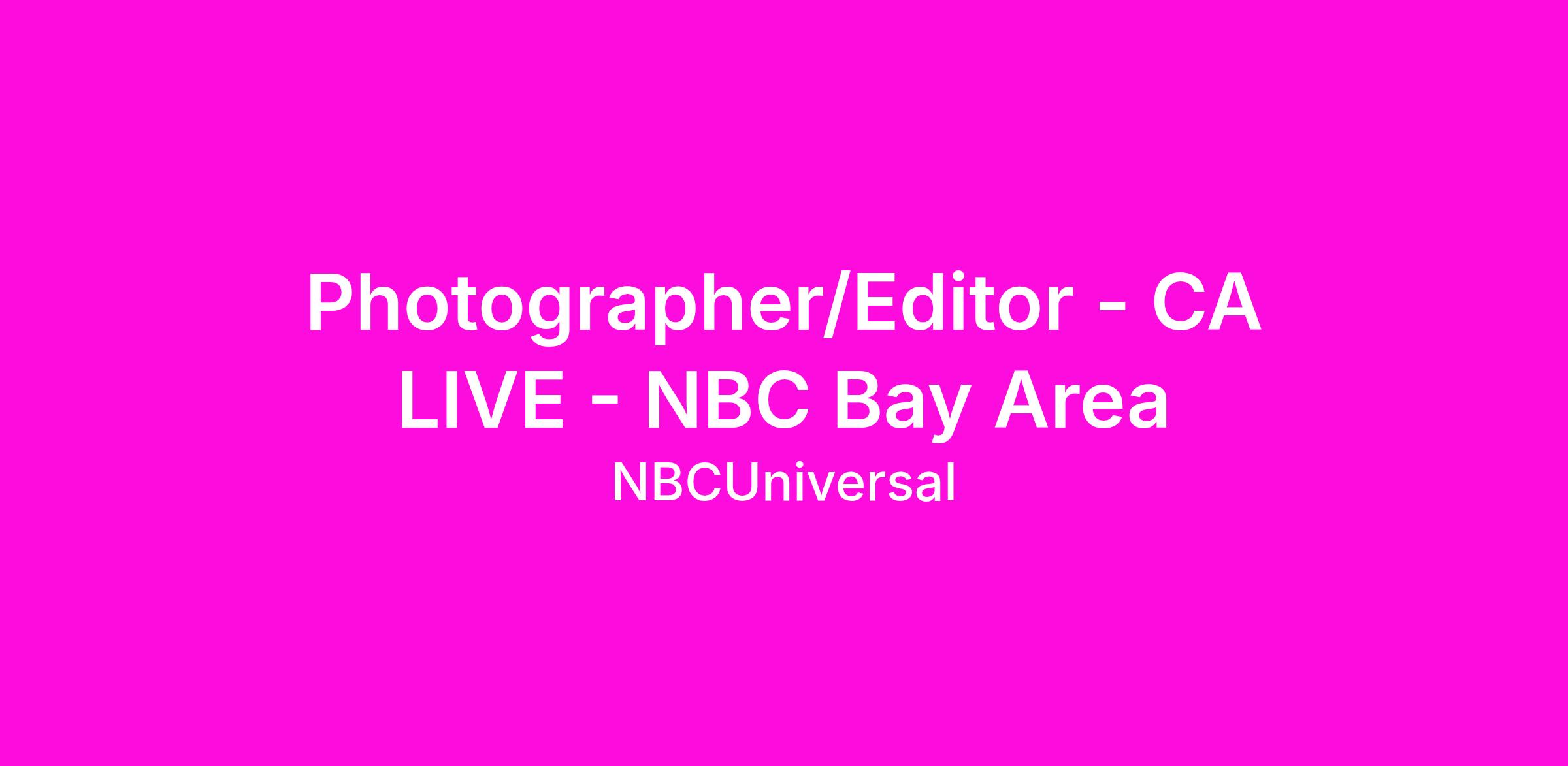 NBC Bay Area, the NBC Owned station for the San Francisco Bay Area, is seeking a Photographer/Editor for its weekday lifestyle morning show California Live as well as Telemundo 48’s Acceso Total.