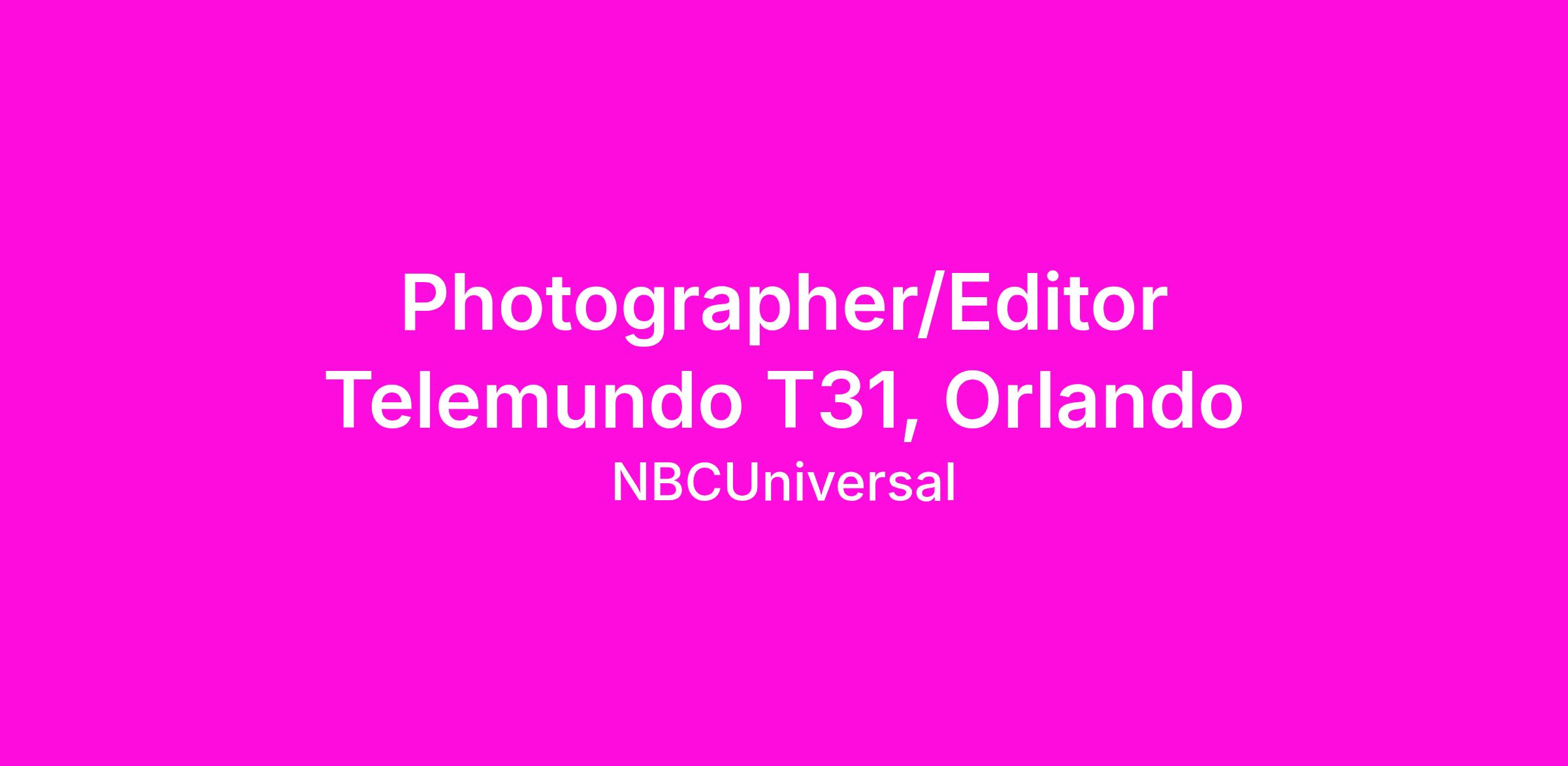 Telemundo Orlando is seeking a motivated and skilled Photographer/Editor to support Spanish-language news coverage. The Photographer/Editor must demonstrate a strong commitment to creative visual storytelling, with excellent videography and editing skills. This role requires the ability to produce daily content from the field, independently or in collaboration with reporters, and a willingness to learn and adapt as new technologies are introduced.