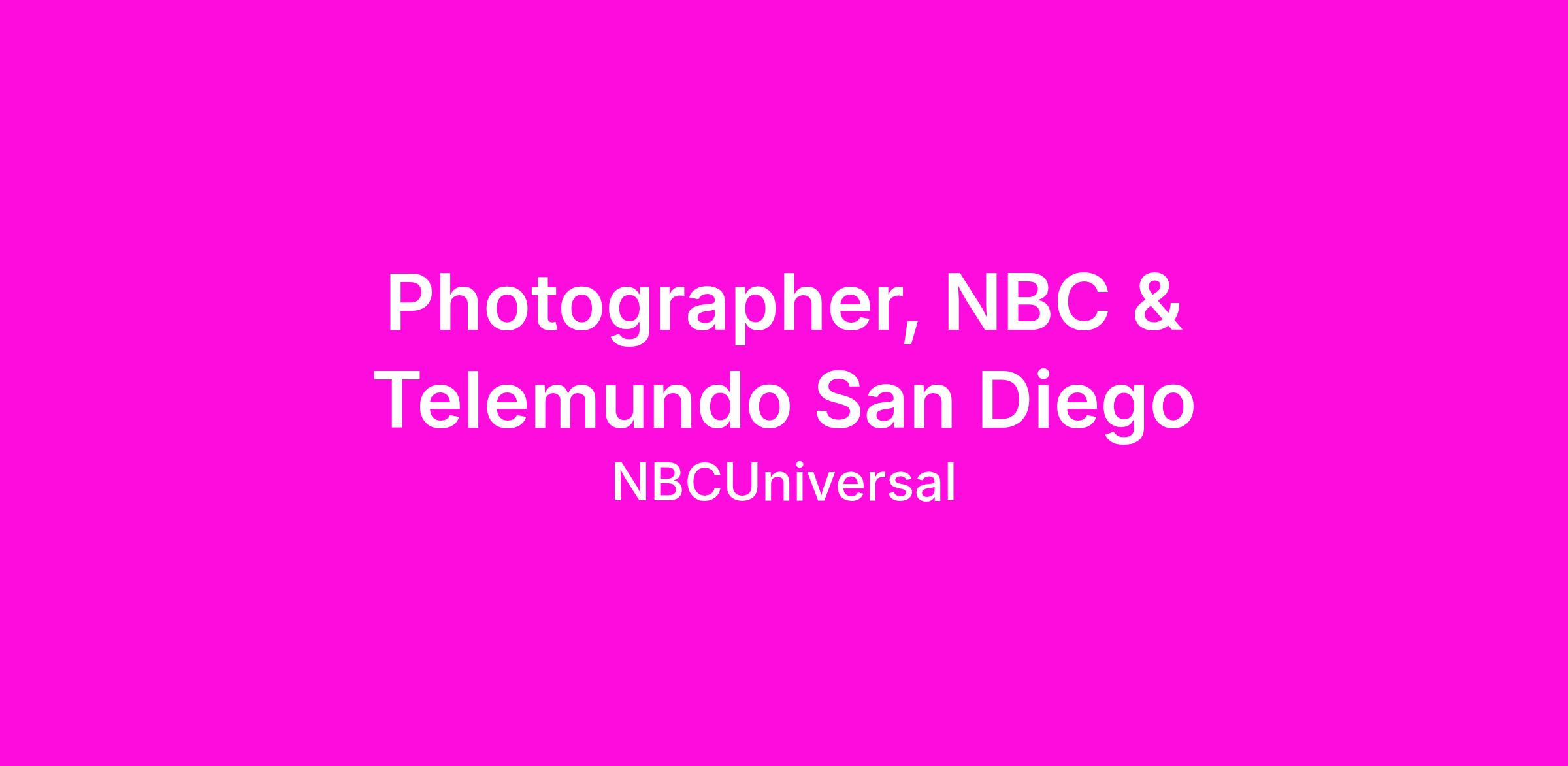 NBC 7 and Telemundo 20 San Diego are looking for a Photographer to help our news team gather and present compelling news stories to our viewers. You will be responsible for shooting and editing stories, including spot news and features, and setting up live shots.