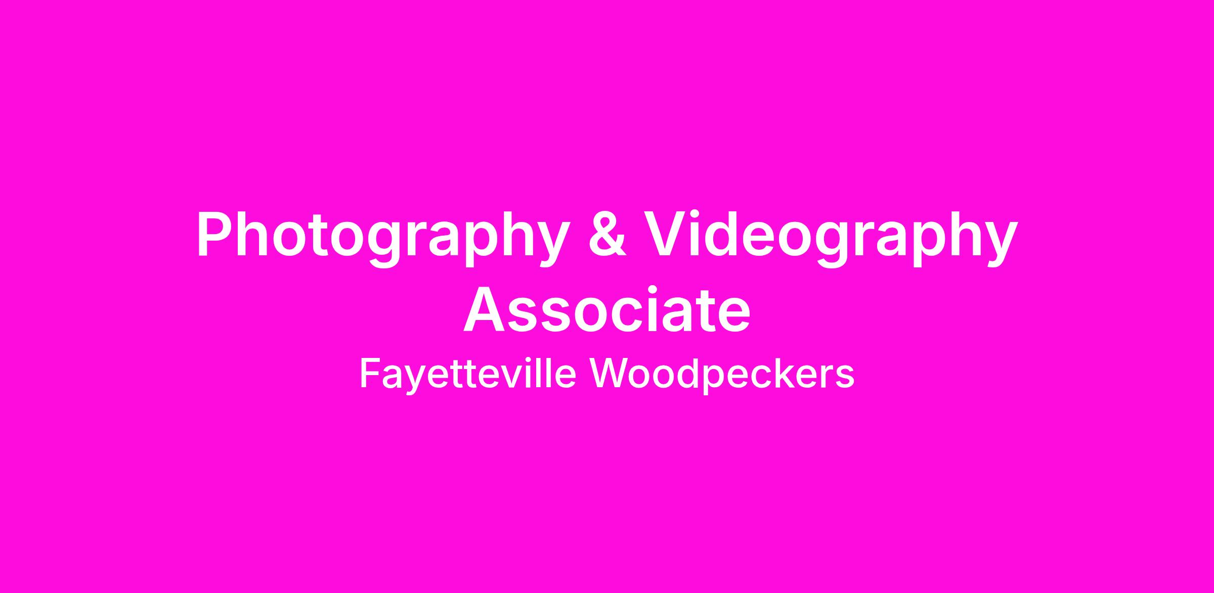 The Fayetteville Woodpeckers are seeking a Photography / Videography Associate. This position will work with the Creative Service Manager on concepting and capturing photography / videography to be used throughout social media and during games.