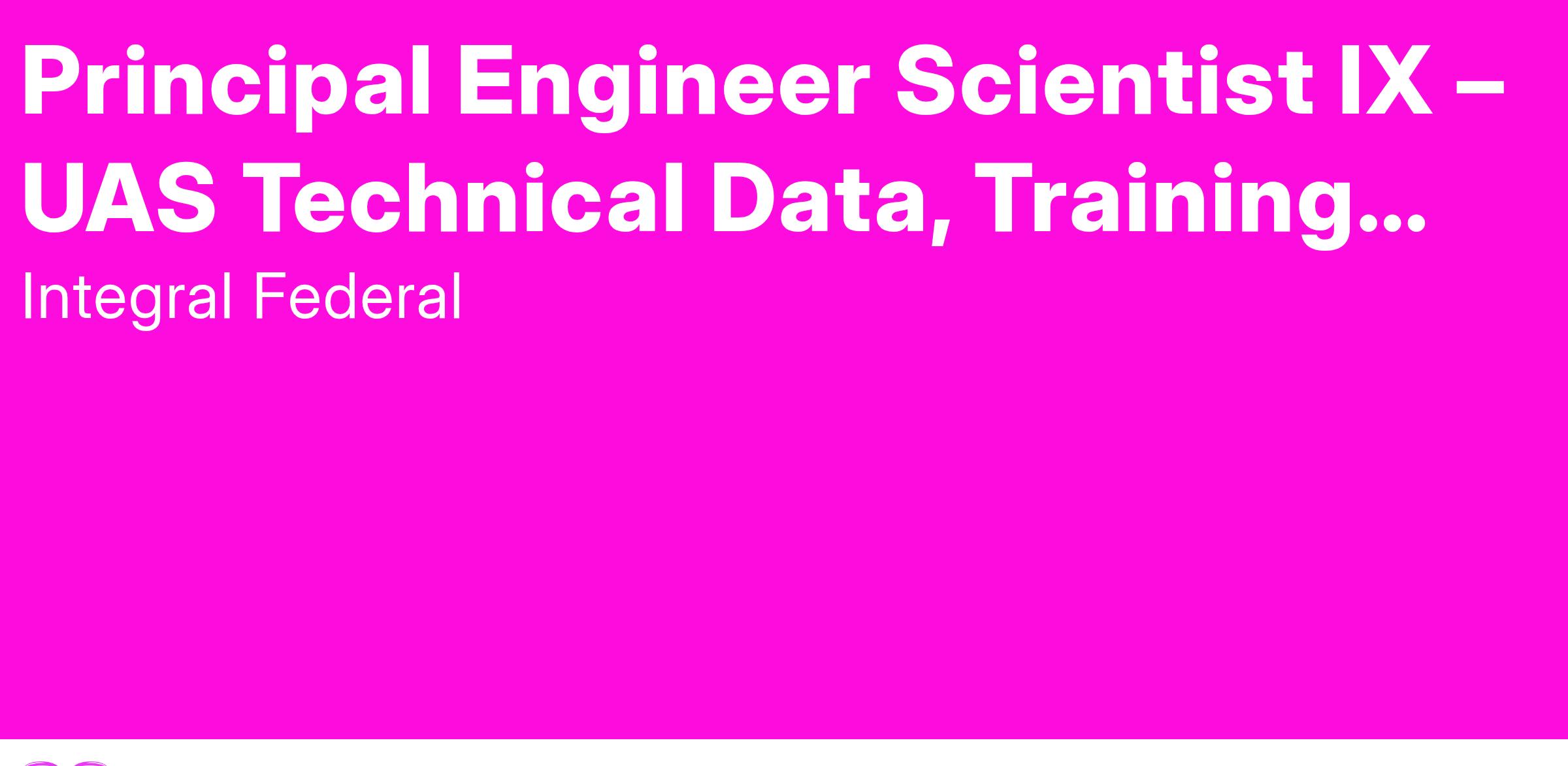Principal Engineer Scientist IX – UAS Technical Data, Training Systems, and Advanced Engineering