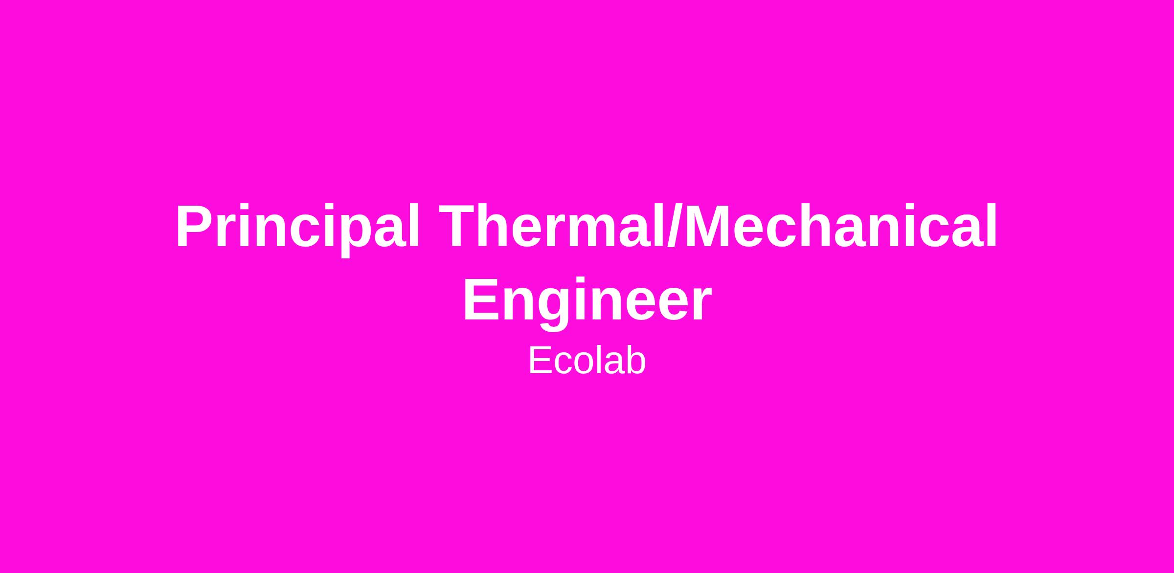 Nalco Water, an Ecolab Company, is seeking a talented scientist with expertise in thermal engineering, cooling equipment design and testing to join the Global High Tech R&D team located in Naperville, IL as a Principal Thermal/Mechanical Engineer. The GHT team supports the Light Water business for Data Centers, Microelectronics, and Colloidal Technologies. This role will lead cooling equipment innovation projects for our Data Center portfolio, communicate regularly with the field/customers/business leaders, design/test/implement new equipment, and ensure a robust pipeline for new products and platforms that help our customers solve complex cooling problems.