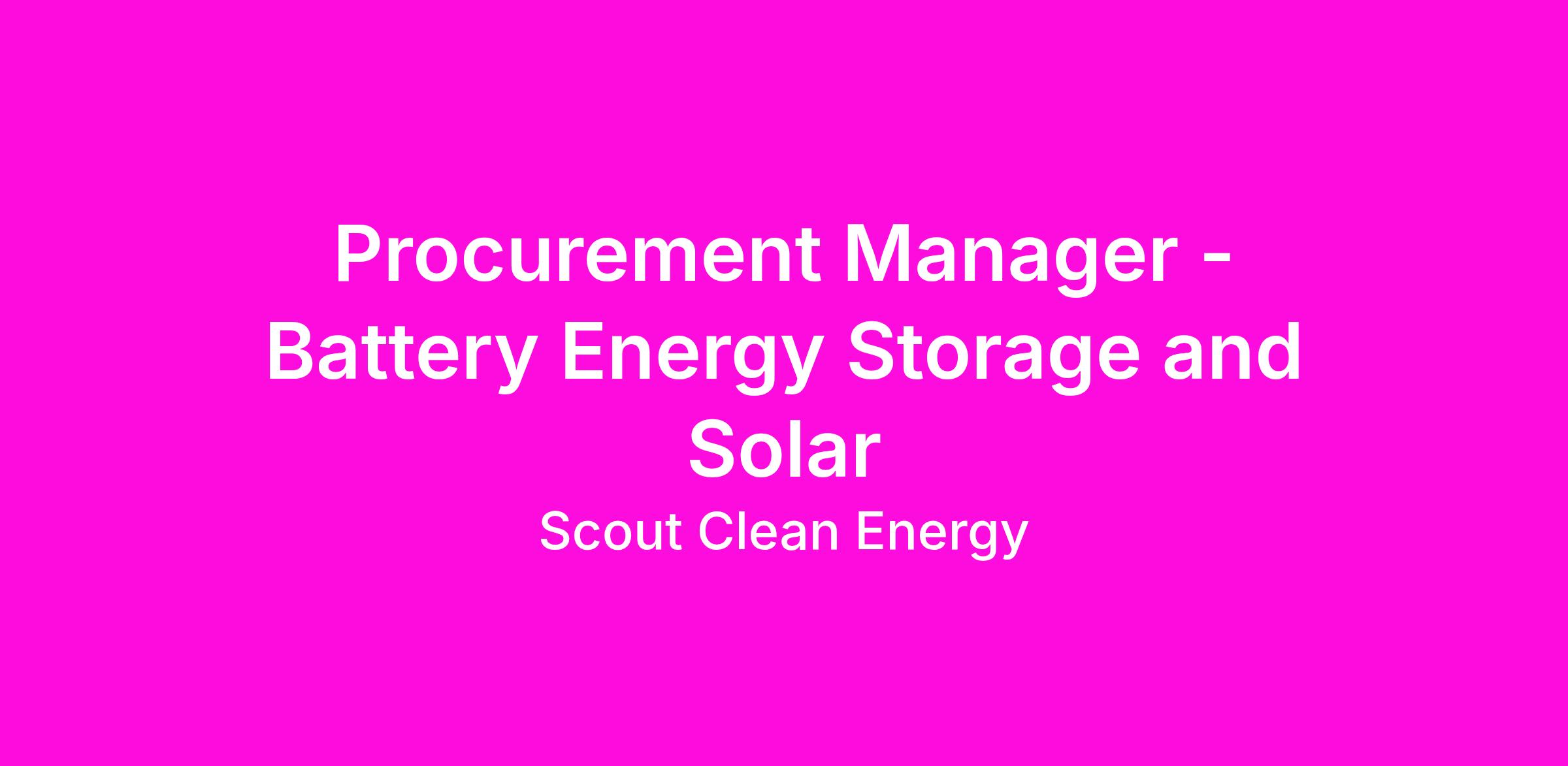 DescriptionAs Scout’s Procurement Manager, you will play a key role and own the procurement of Battery Energy Storage and Solar Equipment category end-to-end for the fastest-growing technologies in the power sector: utility-scale Energy Storage and Solar. Your ability to draw on your knowledge of a combination of the commercial, technical and financial aspects of renewables will enable our team to make better informed decisions. You will develop and execute negotiating strategies, lead deals, and serve as Scout’s representative to our vendors and partners.