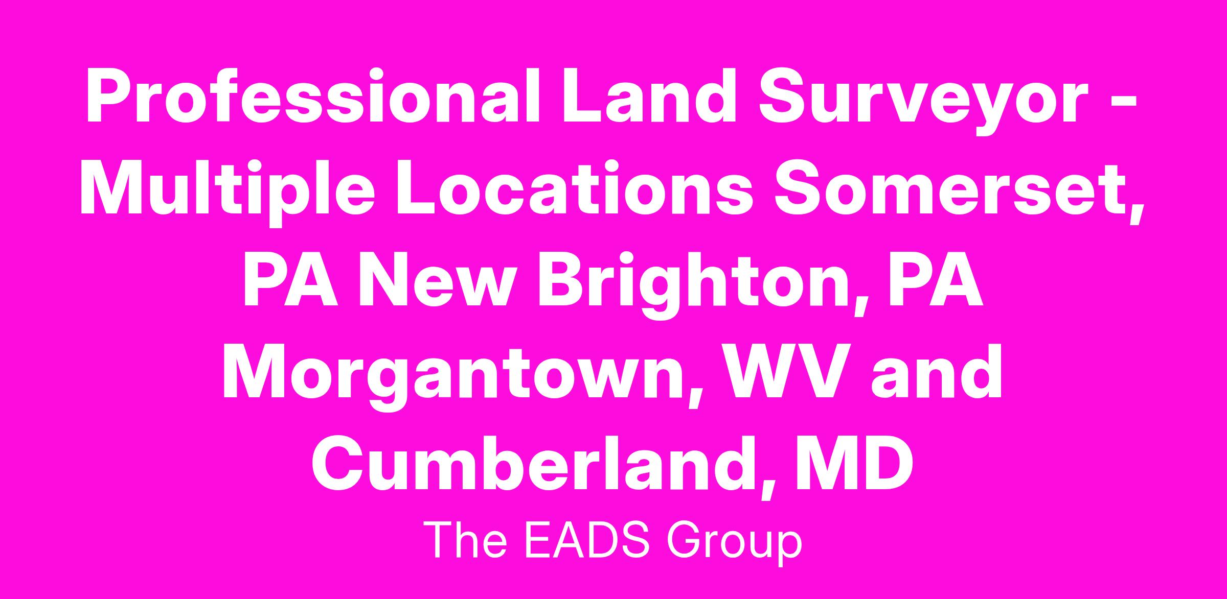 Professional Land Surveyor - Multiple Locations Somerset, PA New Brighton, PA Morgantown, WV and Cumberland, MD
