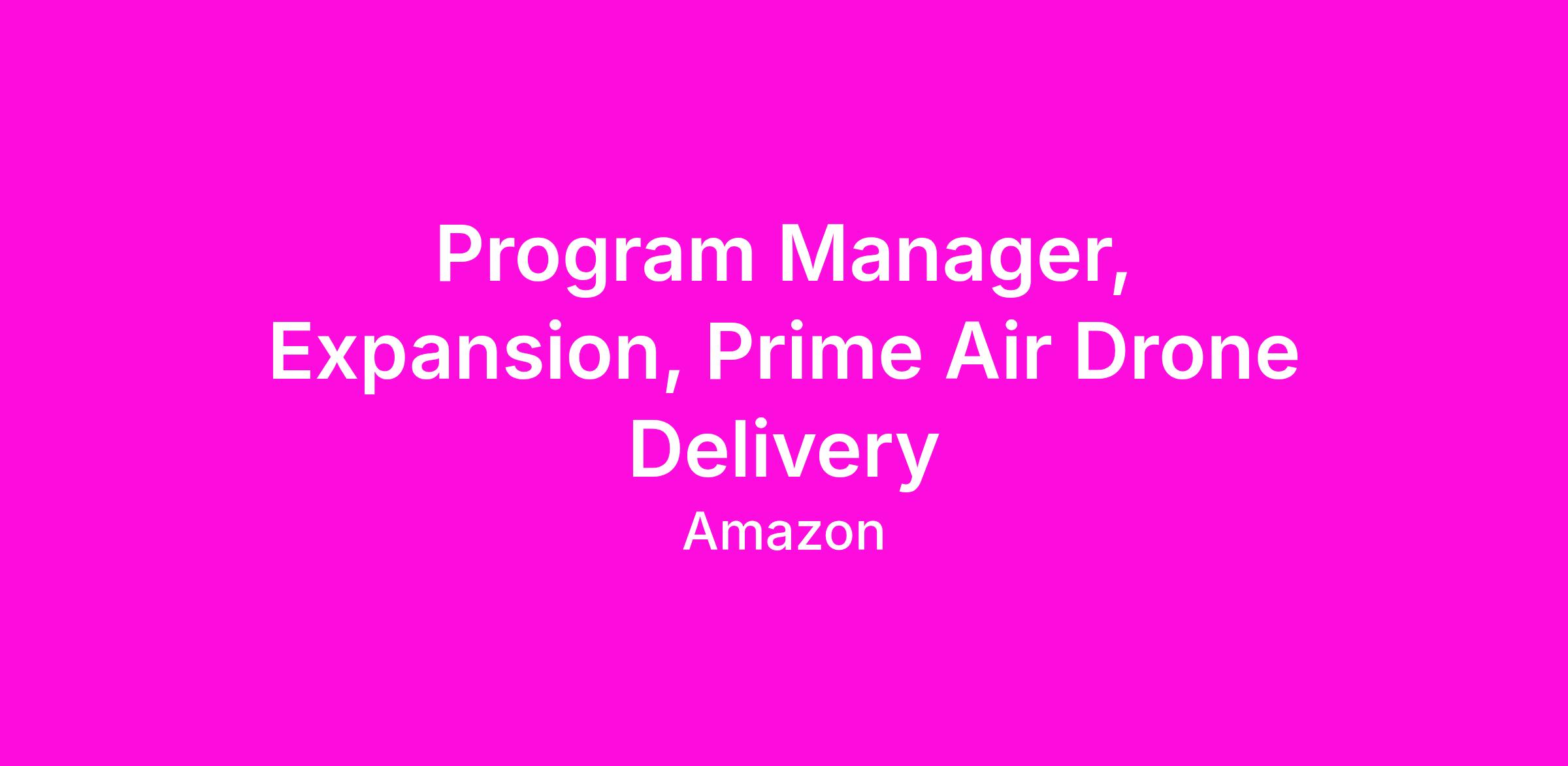 With operations already successful in multiple locations and expansion planned, we're seeking an experienced Program Manager to develop and implement strategic operational frameworks. In this role, you'll work at the intersection of innovative technology, operational excellence and implementation, and strategic planning to help scale Prime Air's revolutionary delivery system.