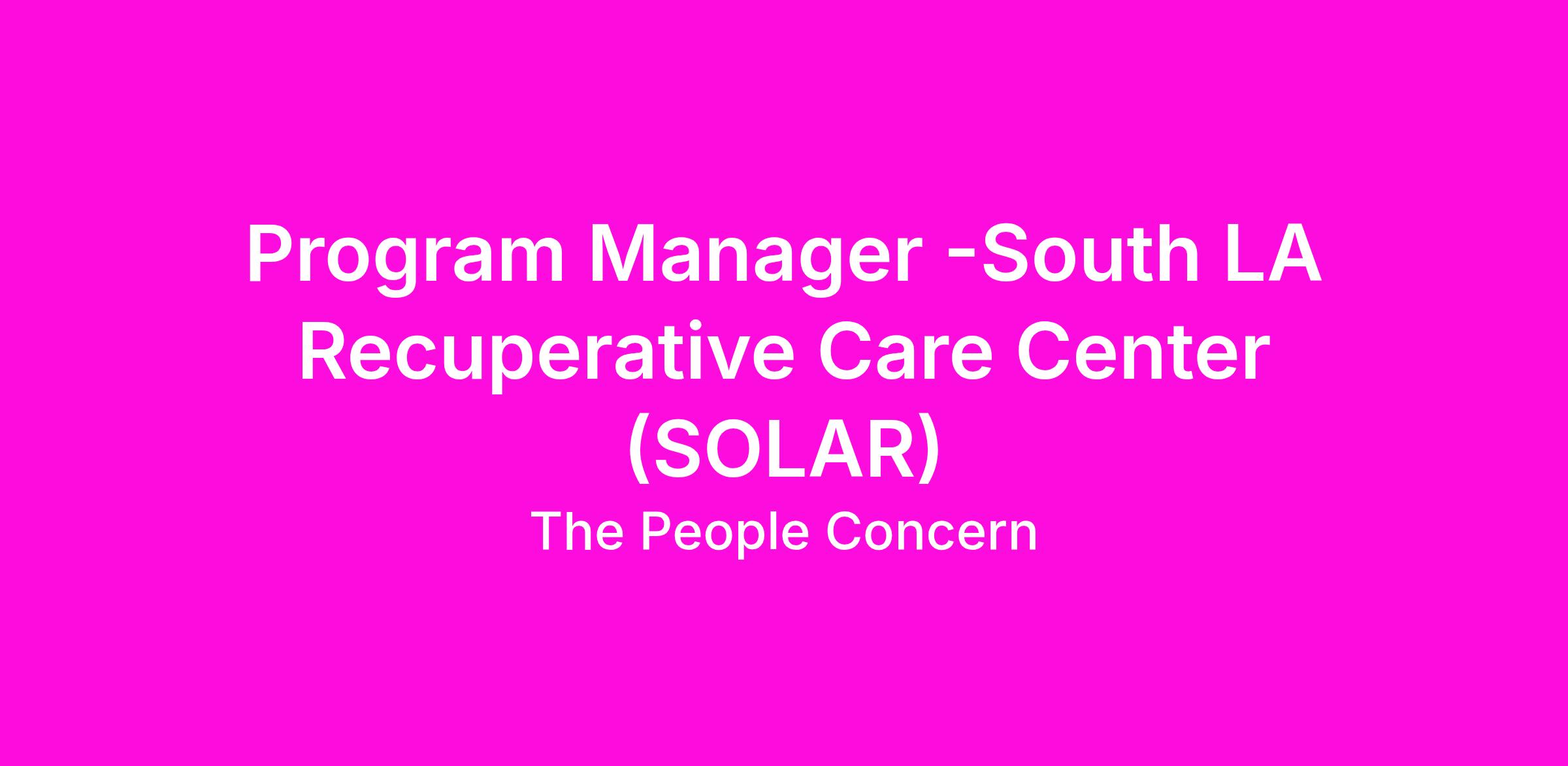 Program Manager -South LA Recuperative Care Center (SOLAR)
