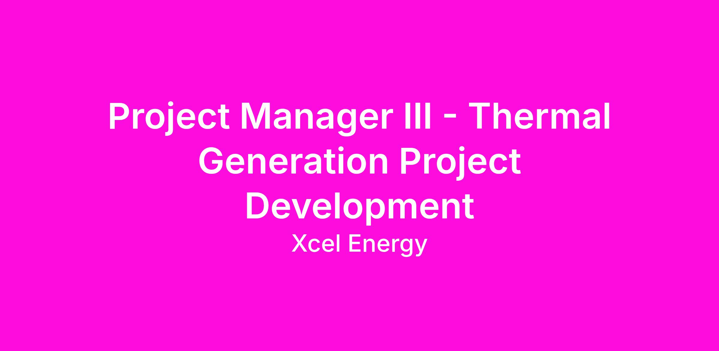The Project Manager III provides the Generation Development team and individual project teams with deliberate and organized project management support to plan and develop new dispatchable generation projects and large-scale improvement projects at existing generation plants. Development work is largely focused on project origination and conceptual design leading to technology selection, optimized cost estimates, schedules, preliminary technical designs, major supply contracts, and EPC contracts. The work also includes planning the development process by leveraging corporate development, regulatory, project controls, environmental, technical, supply chain, and other disciplines while driving the project forward with cost and schedule control. The project manager is expected to be highly collaborative and capable of leading high-impact conversations with both internal executives and outside parties.