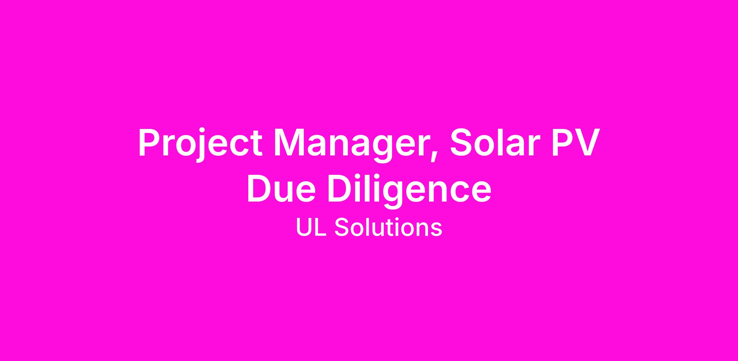 Project Manager, Solar PV Due Diligence