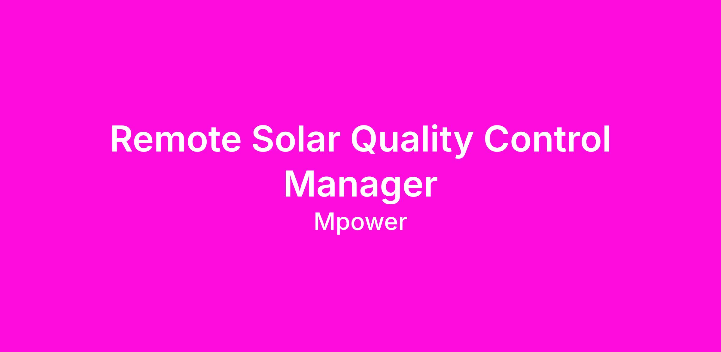 Remote Solar Quality Control Manager