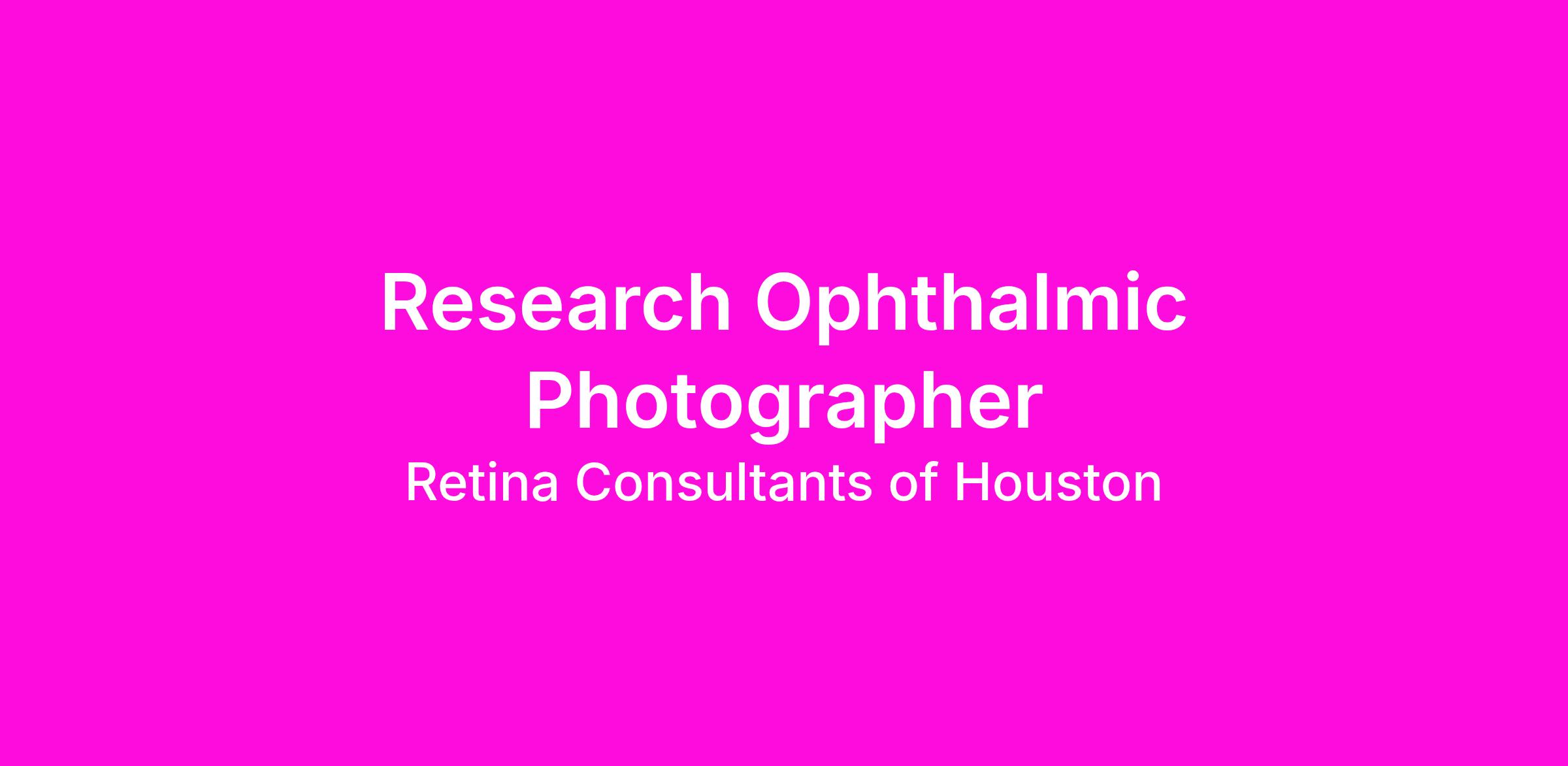Retina Consultants of Texas (RCTX) is seeking a Ophthalmic Photographer to join our innovative Research team with the mission of Fighting Blindness For The World To See. This position will be responsible for providng excellent customer service in a fast-paced environment at our Katy Clinic with travel to other clinics as needed.