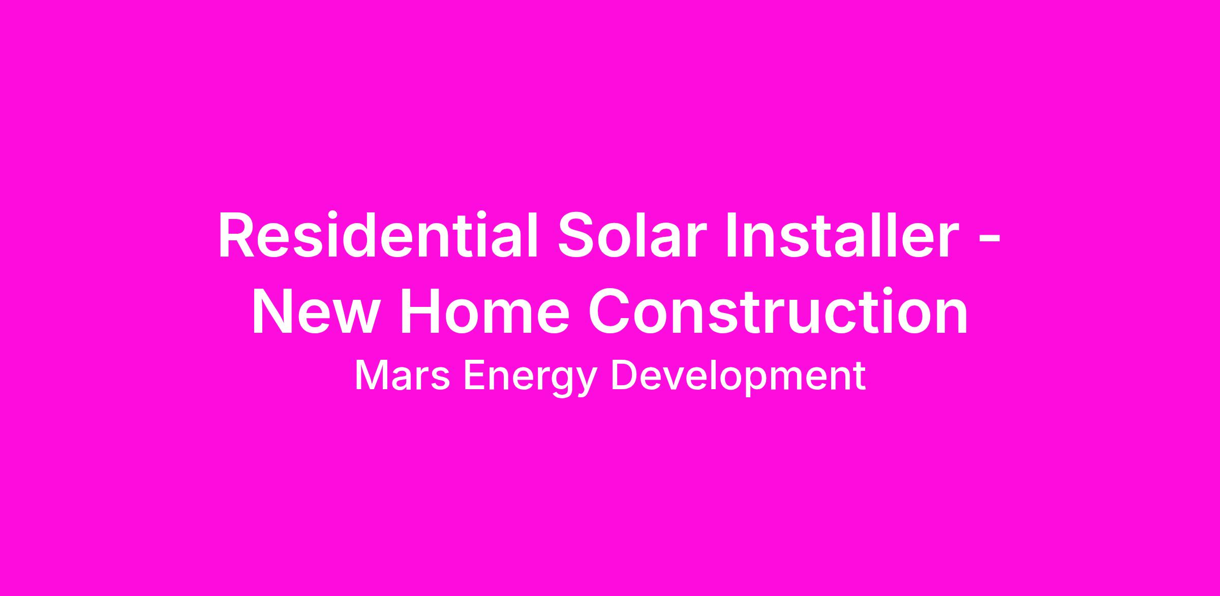 MARS Builder Solutions (Solara) is hiring Solar Installers to support new home construction projects in the Valencia, CA area: