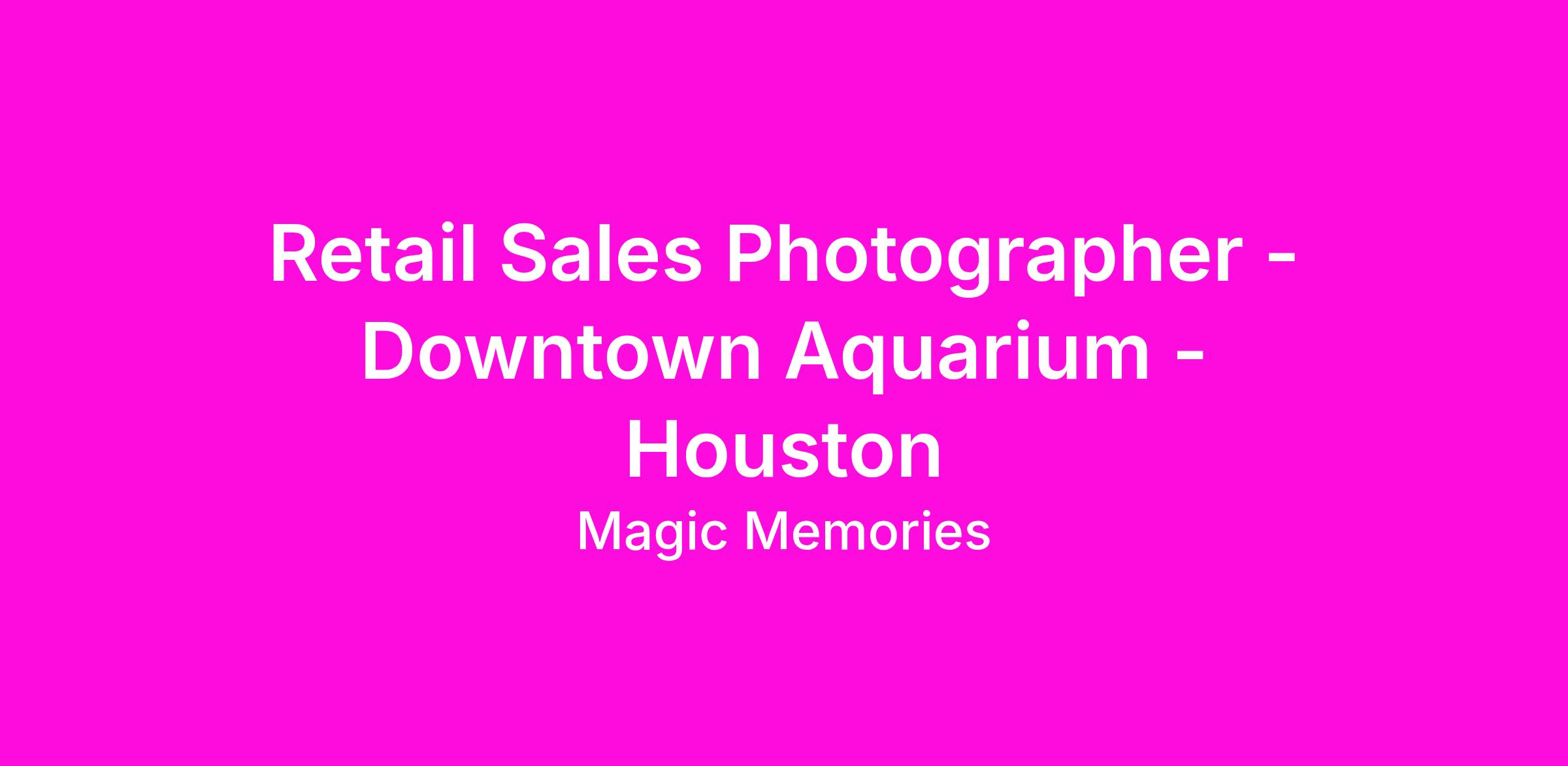 Picture yourself working at Magic Memories in a rewarding, fast-paced environment based in Houston, TX. We are actively hiring for a Retail Sales Photographer in an exciting and dynamic atmosphere located at our iconic attraction Downtown Houston Aquarium!