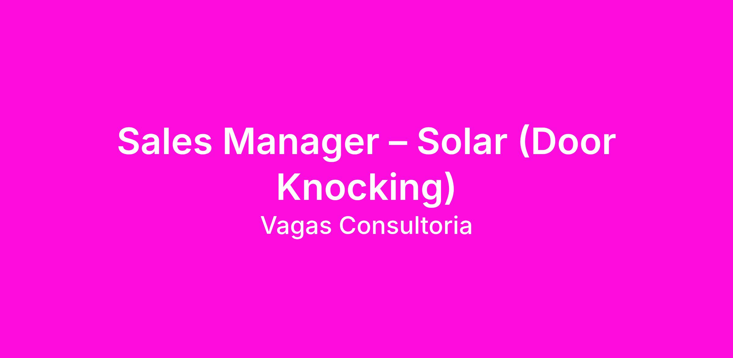 We are looking for a highly experienced Solar Sales Manager with a strong background in door-to-door (door knocking) sales to lead and scale our sales team in Orlando.