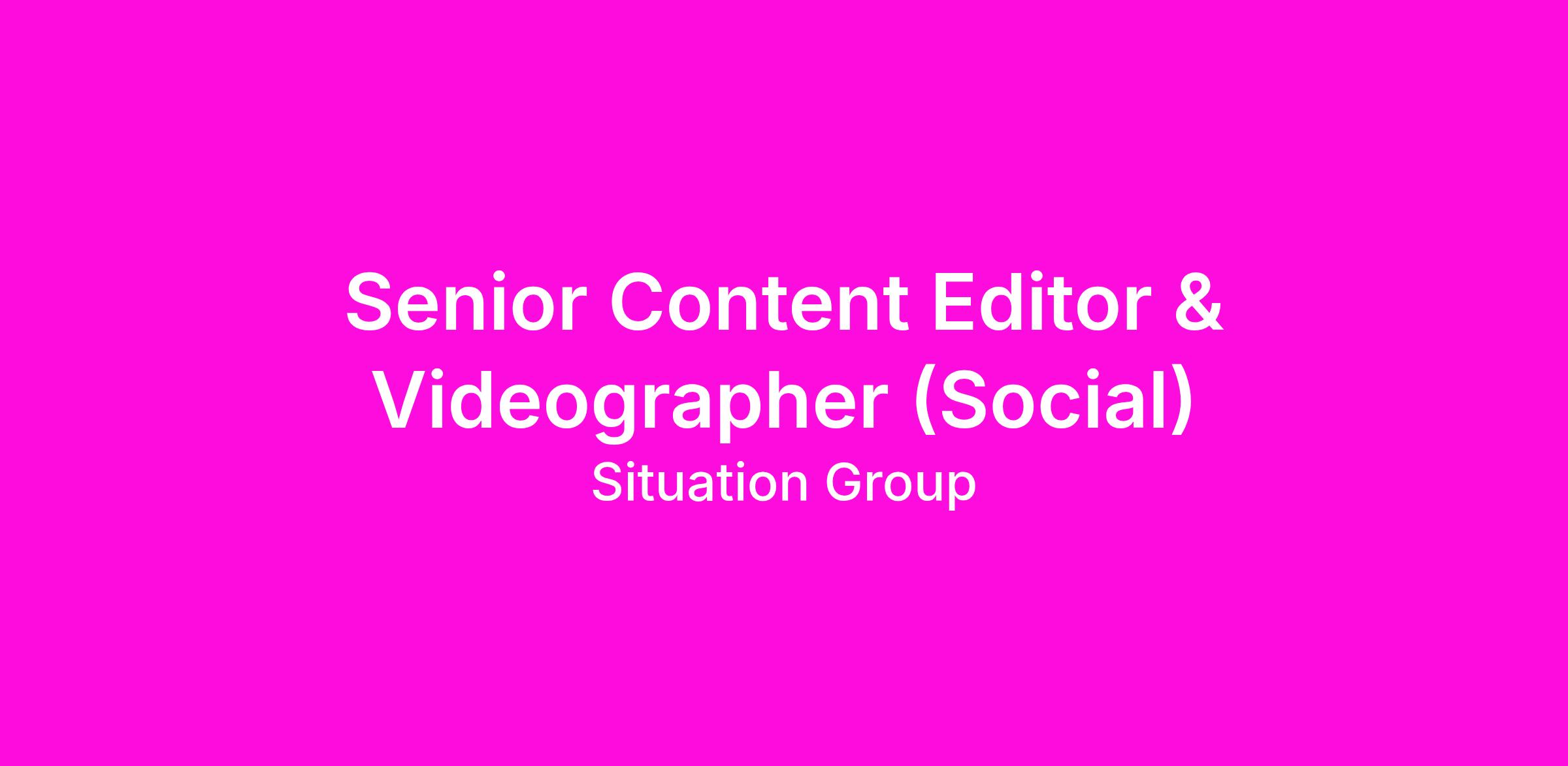 DescriptionSituation Group, a global collective of digital-first advertising agencies and an award-winning nonprofit, seeks a Senior Content Editor & Videographer to work primarily within the Social Media team alongside Social Managers to develop best-in-class video content for our clients. This role will bring social video content ideas into production and post-production in a timely manner to meet client goals and milestones. They will attend social team meetings and use their video expertise to help shape content calendars and manage video projects across clients. This role will report to the Social Media Director and will, at times, provide additional support to the wider Video team at Situation. The selected candidate is a quick thinker, thrives in creatively collaborative environments, and is an excellent communicator with a passion for live & shared experiences.