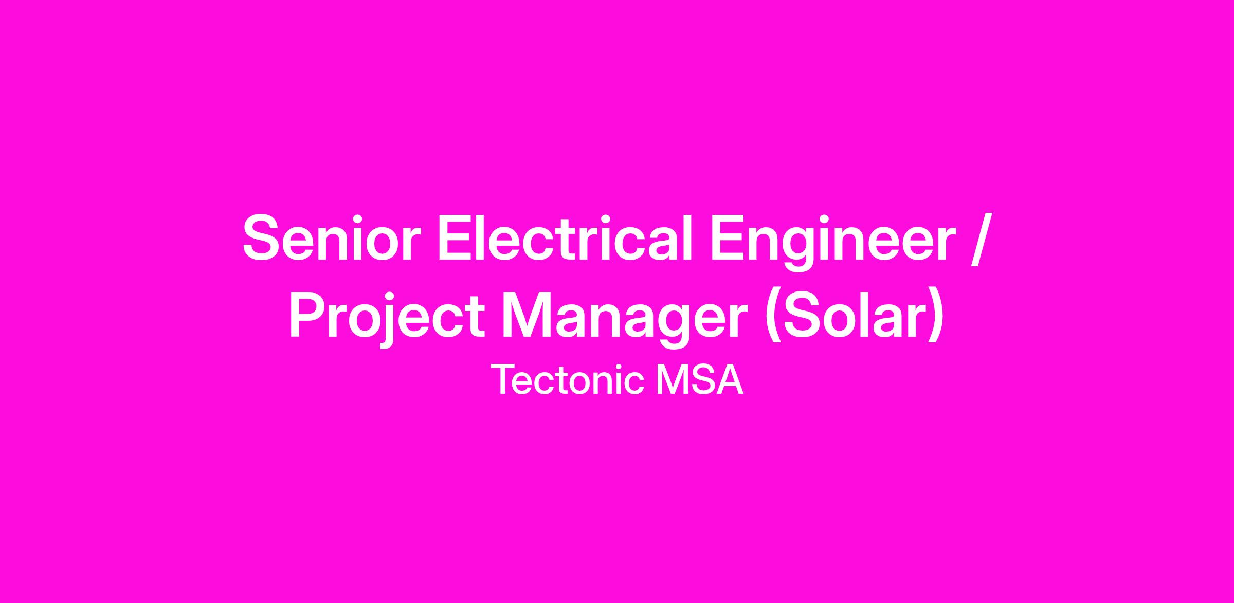 Tectonic is currently seeking a Senior Electrical Engineer / Project Manager to join our dynamic Energy team, working on renewable power, battery storage, and advanced energy projects nationwide.