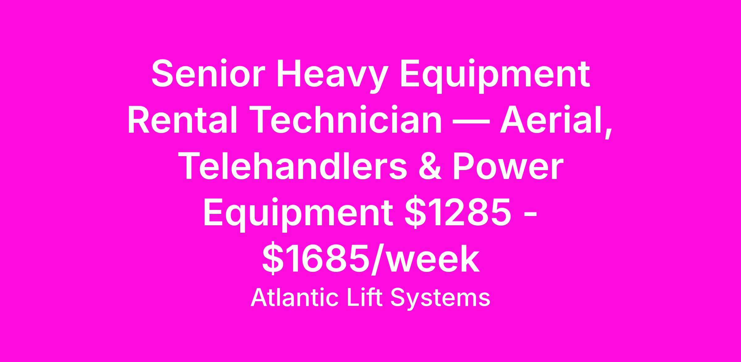 Senior Heavy Equipment Rental Technician — Aerial, Telehandlers & Power Equipment $1285 - $1685/week