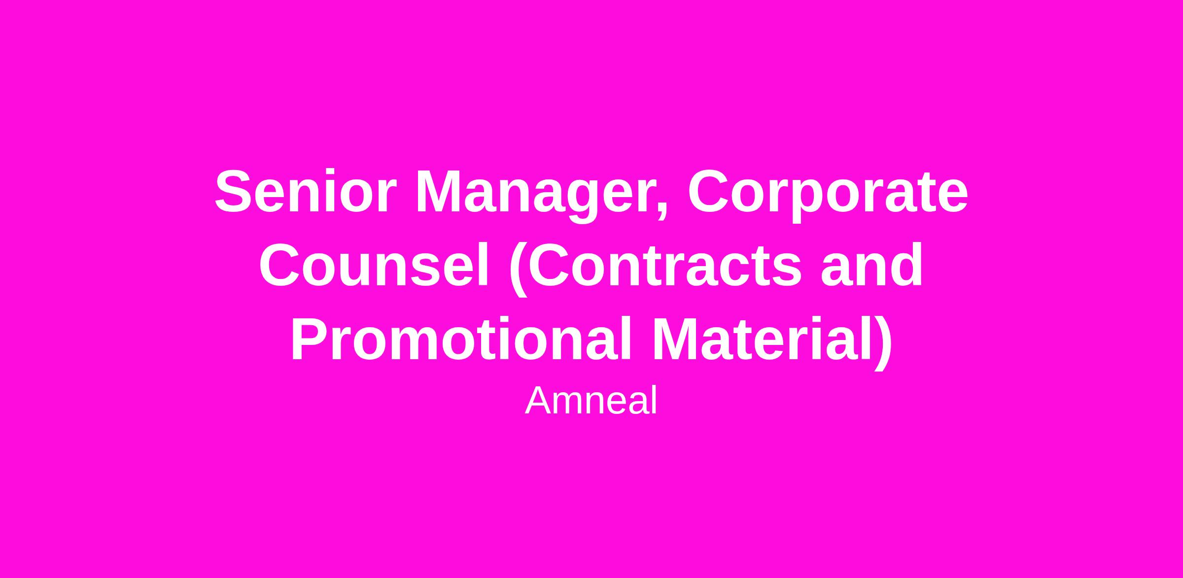 The Senior Manager, Corporate Counsel will be an integral member of the Amneal Legal team and will serve as a trusted legal advisor for all commercial activities involving the company's specialty, biosimilar and generic products. The incumbent will serve as a member of Amneal's promotional assets review committee (PARC), draft/review/negotiate general commercial and other types of contracts, and handle market access/customer-facing contracting.