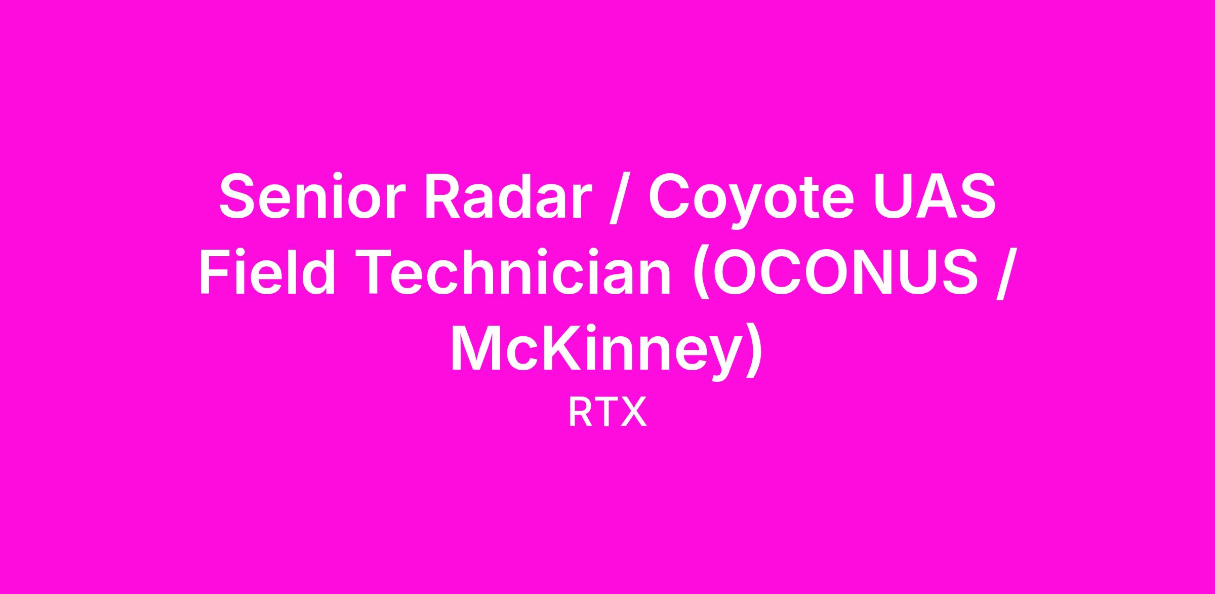 Raytheon's Field Engineering team is looking for Senior Radar / Coyote UAS Field Technician(s) to join our field MFRFS program team.