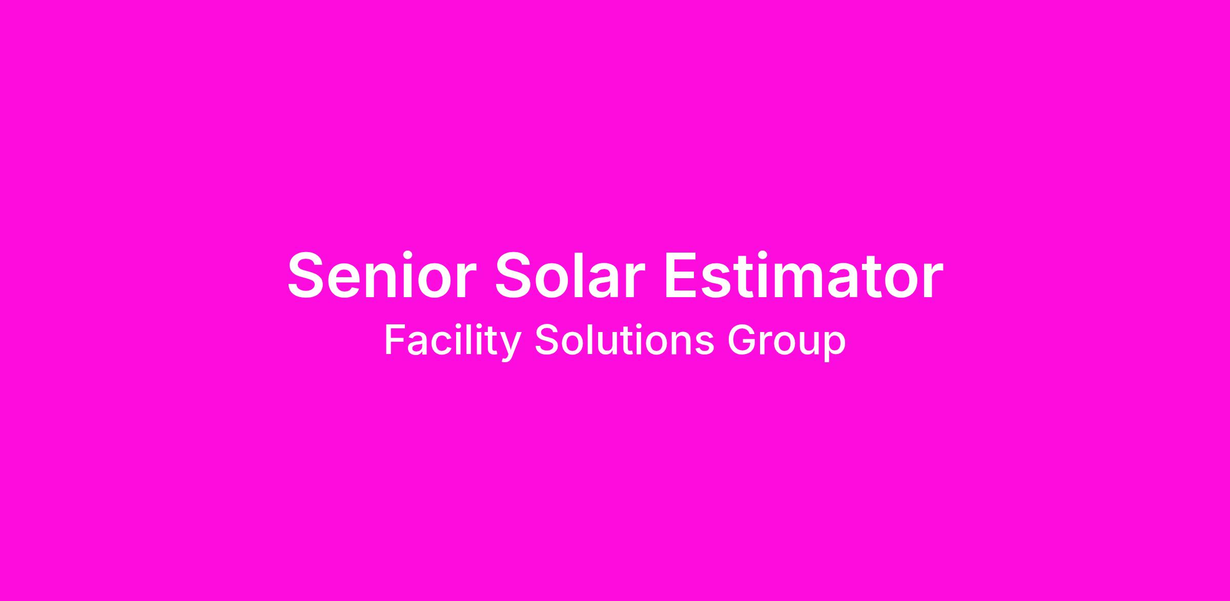 As one of the nation’s largest single-source providers of lighting and electrical products, electrical services, electrical construction, and energy management solutions, Facility Solutions Group is expanding their staff and seeking a Senior Solar Estimator to join the FSG team.