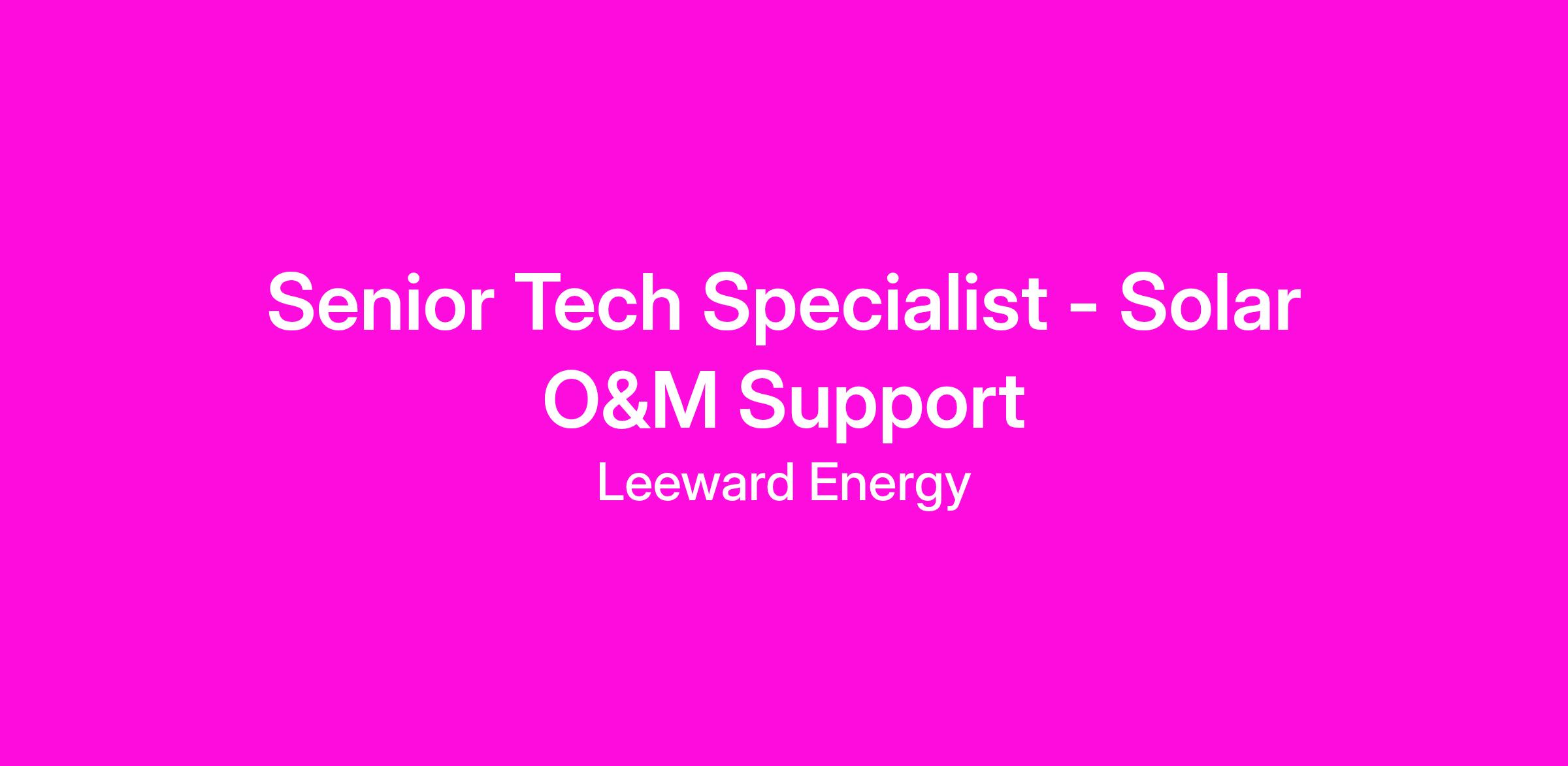 This position reports to the Manager of Solar & Storage Ops Engineering and is responsible for Solar O&M support. In this role, the Specialist will provide technical guidance and support for Leeward Solar self-perform O&M plants. This entails: