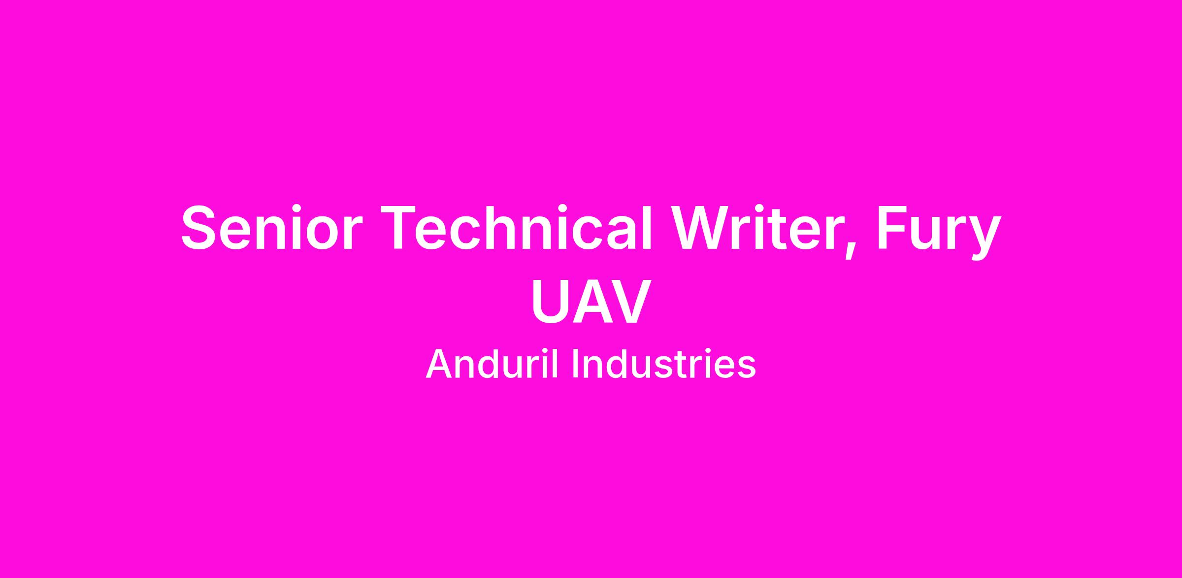 Anduril’s Mission Success team is a cross-functional group that partners with every business line and supports all products that Anduril builds. Our responsibilities include product operations, training and adoption, and user documentation. We are seeking an experienced senior technical writer to lead high-profile and demanding programs for our government customers. We believe that the quality of our documentation should reflect the quality of products, which are world-class.