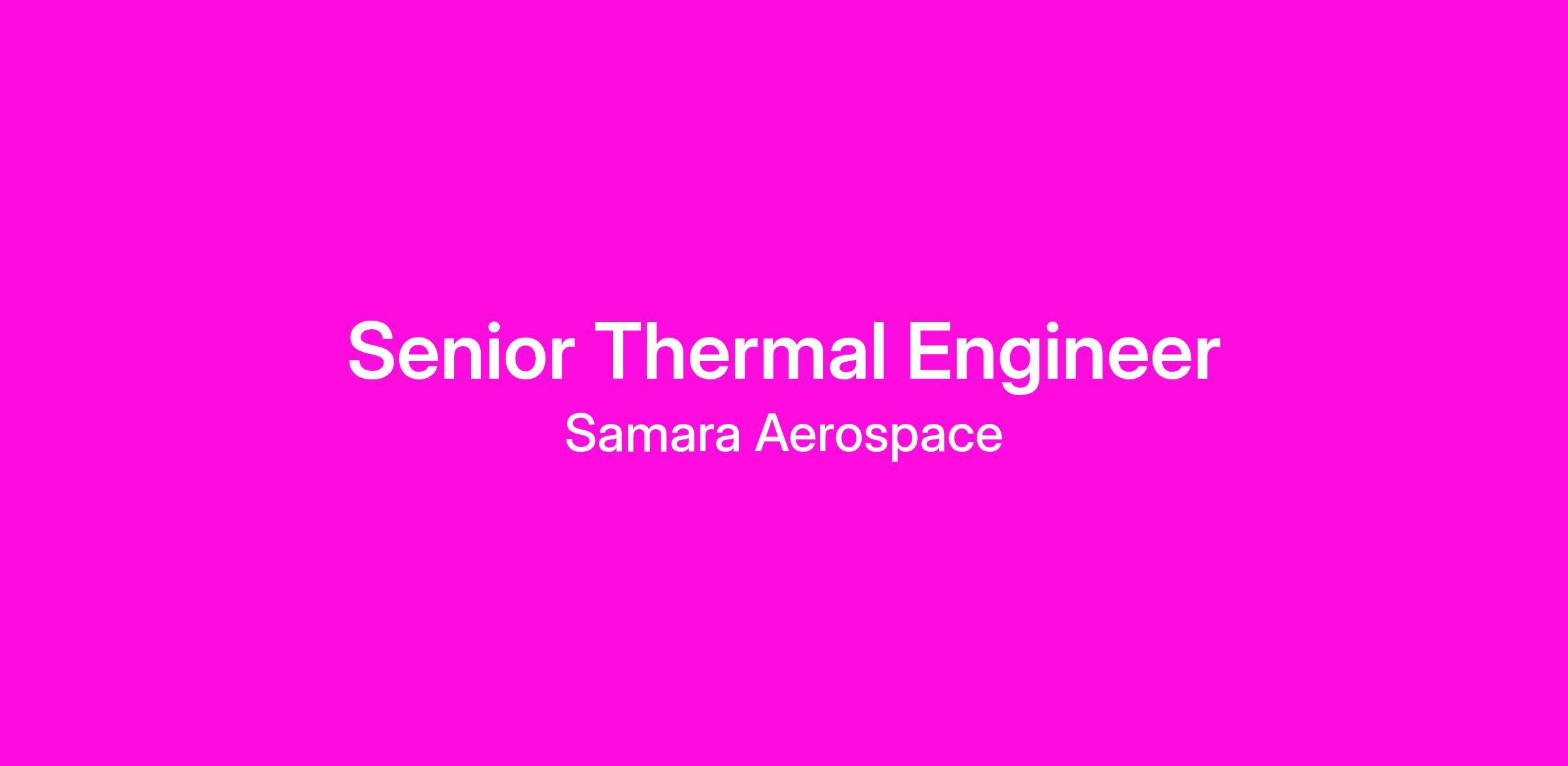 The Mechanical team at Samara is seeking a Senior Thermal Engineer to lead the design, analysis, and testing thermal solutions ranging from electronic chips to full satellite thermal tests at our headquarters in San Francisco. A strong problem-solving background, hands-on testing skills, and experience with spacecraft or printed circuit board thermal mitigation will be essential in this role. You’ll work closely with experienced mechanical and electrical engineers to ensure the Hummingbird satellite survives and thrives in the space environment.
