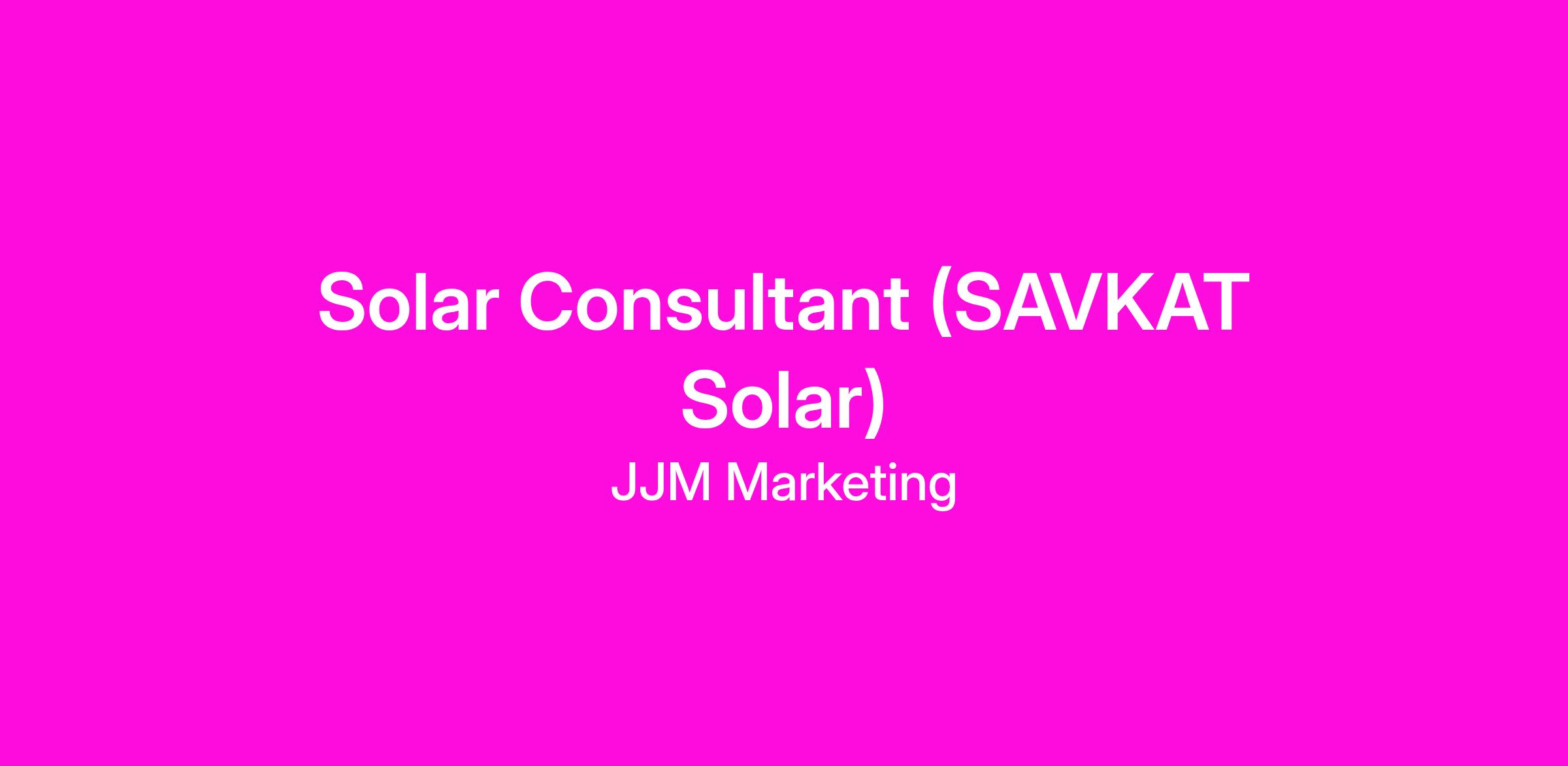 DescriptionBecome a Solar Consultant with SAVKAT Solar!