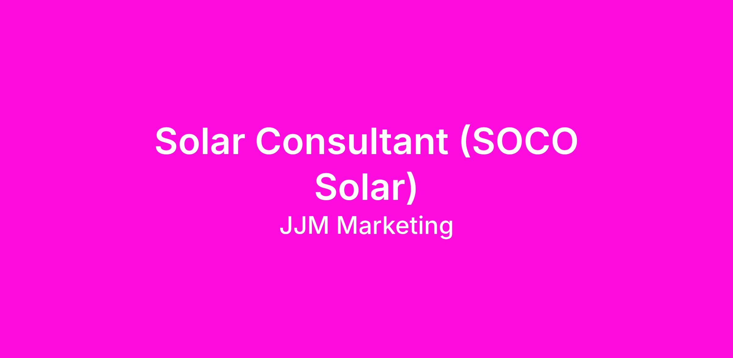 Join SOCO Solar as a Dedicated Solar Consultant!