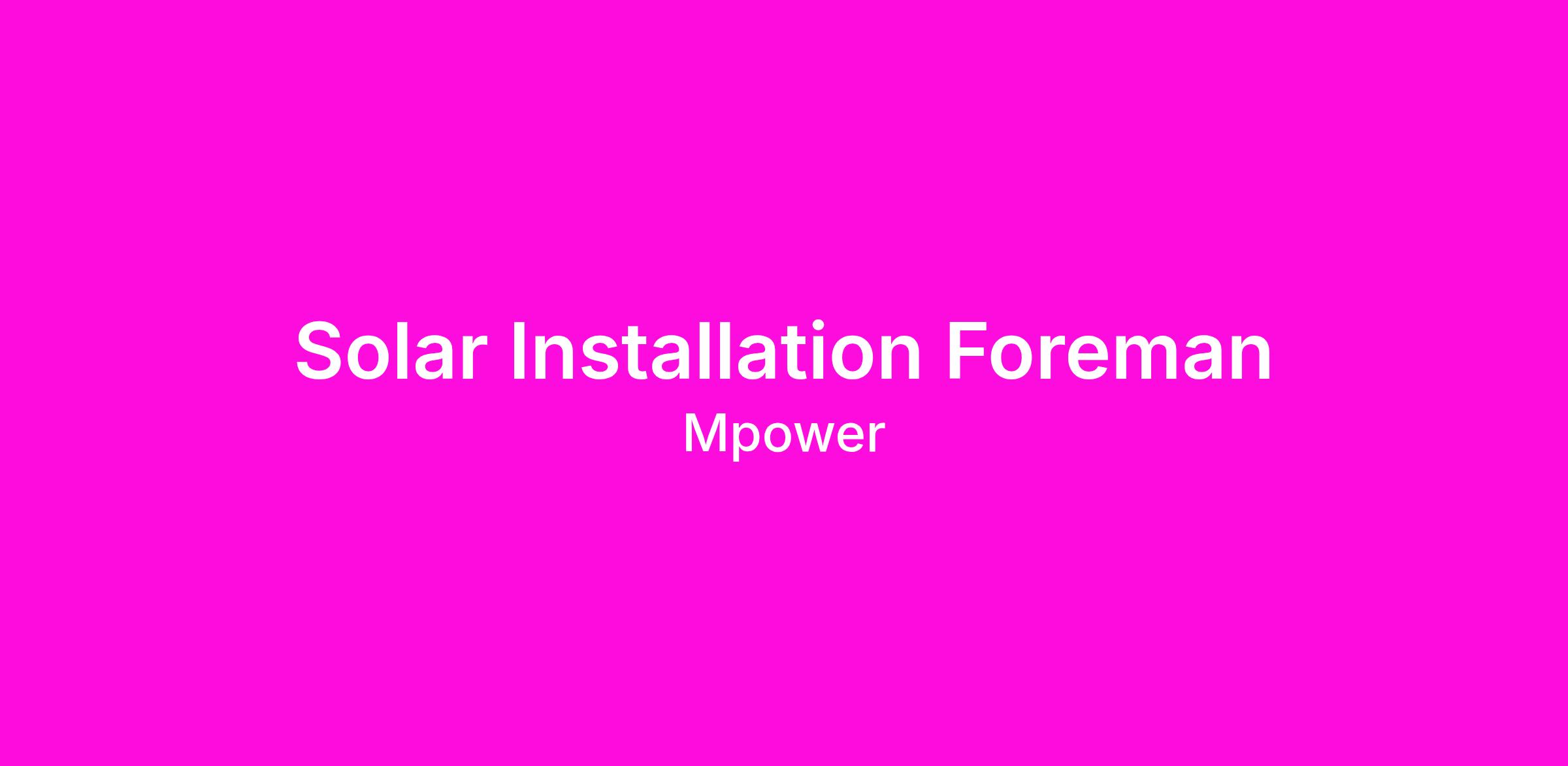 • 5+ years of experience in solar installation, with at least 2 years in a foreman or