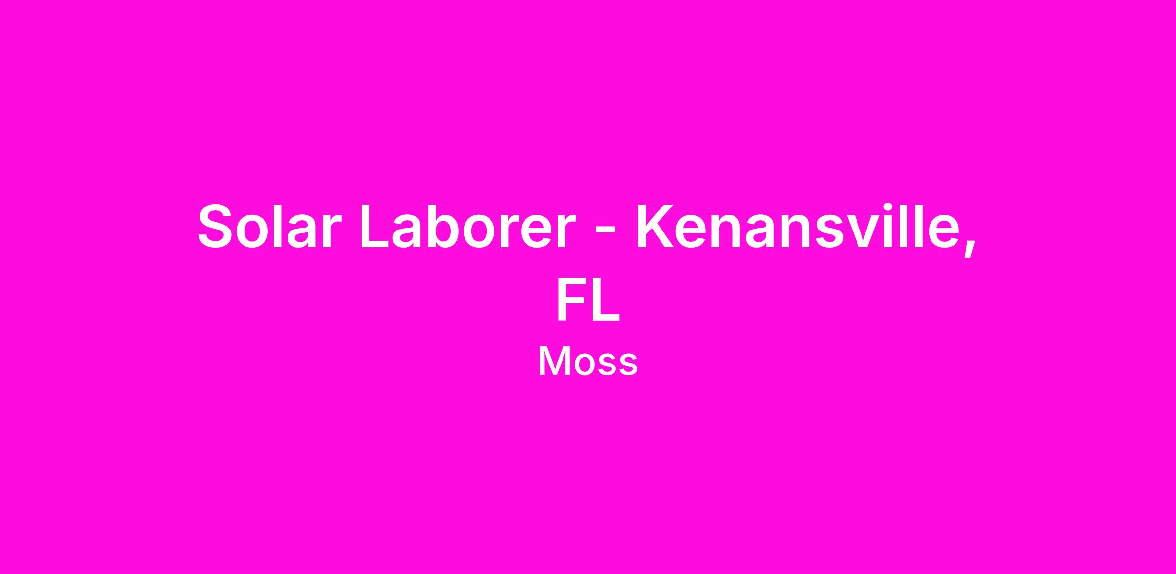 5595 N Canoe Creek Rd Kenansville, Florida 34739No experience is necessary, so if you are hardworking, have a positive attitude, and would like to learn a trade in Solar construction, apply now!Ā MOSS was rated as the #1 Solar Contractor in the country for 2025 and is hiring team members to perform tasks involving construction of utility-scale solar projects on multiple projects. This job requires working outside in all types of weather conditions, while standing and walking for extended periods, and bending, kneeling, and lifting heavy materials.Ā Pay starts at $20 per hour and provides the ability to have growth opportunities with a long-term career and future.