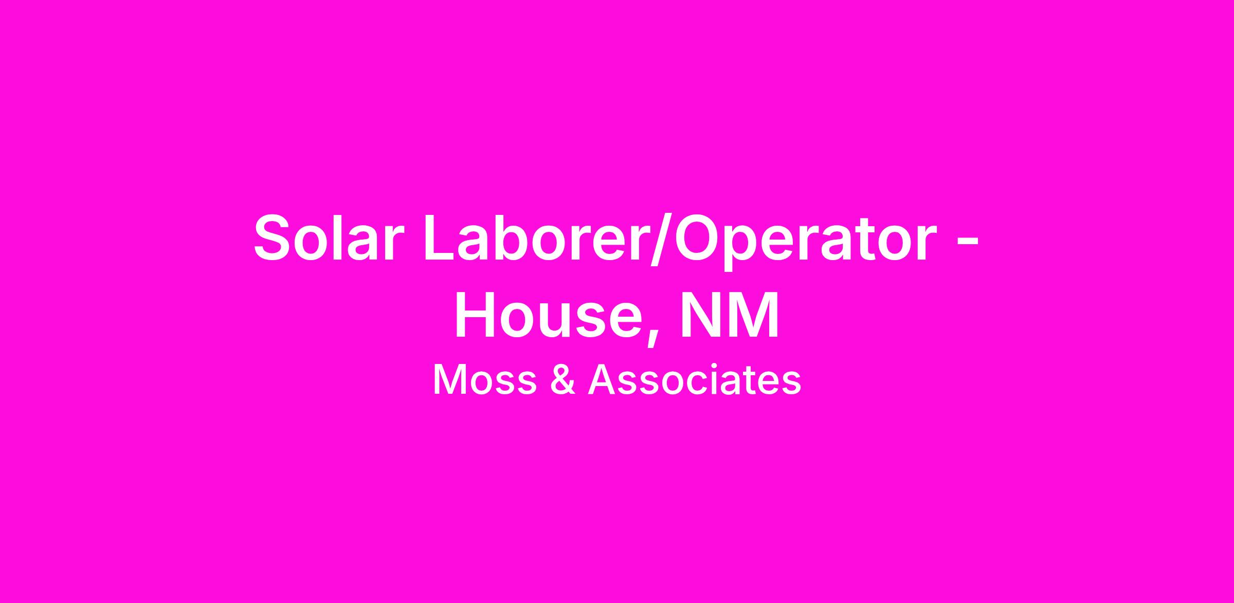 Moss Solar, the #1 Solar EPC Contractor of 2025, is hiring Solar General Laborers to support our growing solar projects. If you're a hardworking team player who can handle physical labor in various weather conditions, apply today!