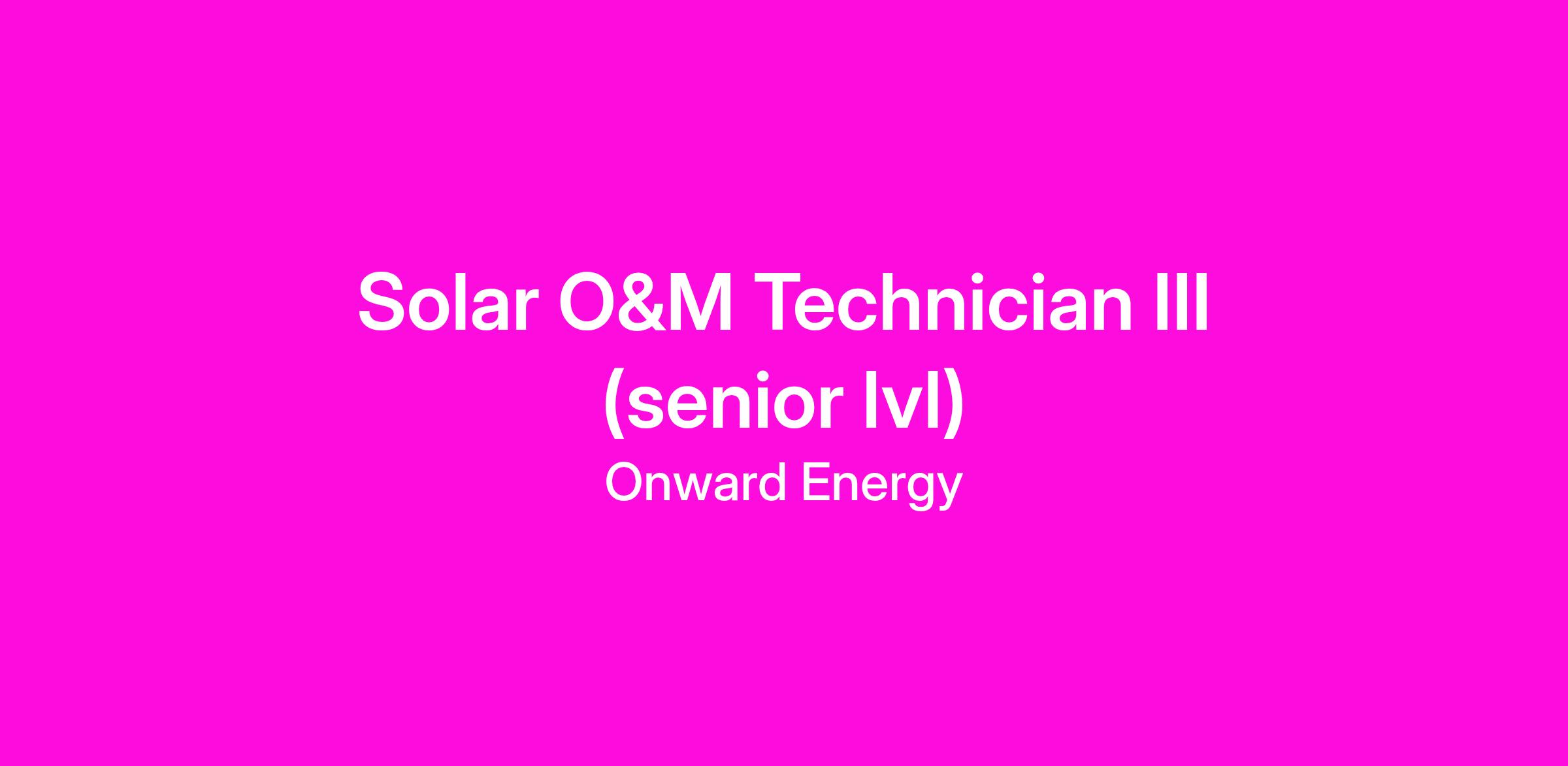 This position reports to the Solar O&M Supervisor. The Solar O&M Tech III will be directly responsible for all aspects of the maintenance and operation of utility-scale PV power plant. Duties include monitoring PV plant operation through SCADA, commissioning, testing, inspecting, troubleshooting, repairing, and modifying Inverters, transformers, switchgear, trackers, and metering systems. Additionally, this position is responsible for the supervision of associates/contractors to ensure safe, high-quality quality and timely performance of maintenance activities in the field. This position will act as the primary responder to automated service calls generated by remote alarm notification systems. Candidate should be able to fully run the site with limited to no supervision. Should be prepared to take over supervision of the facility in the absence of the Solar O&M Supervisor.