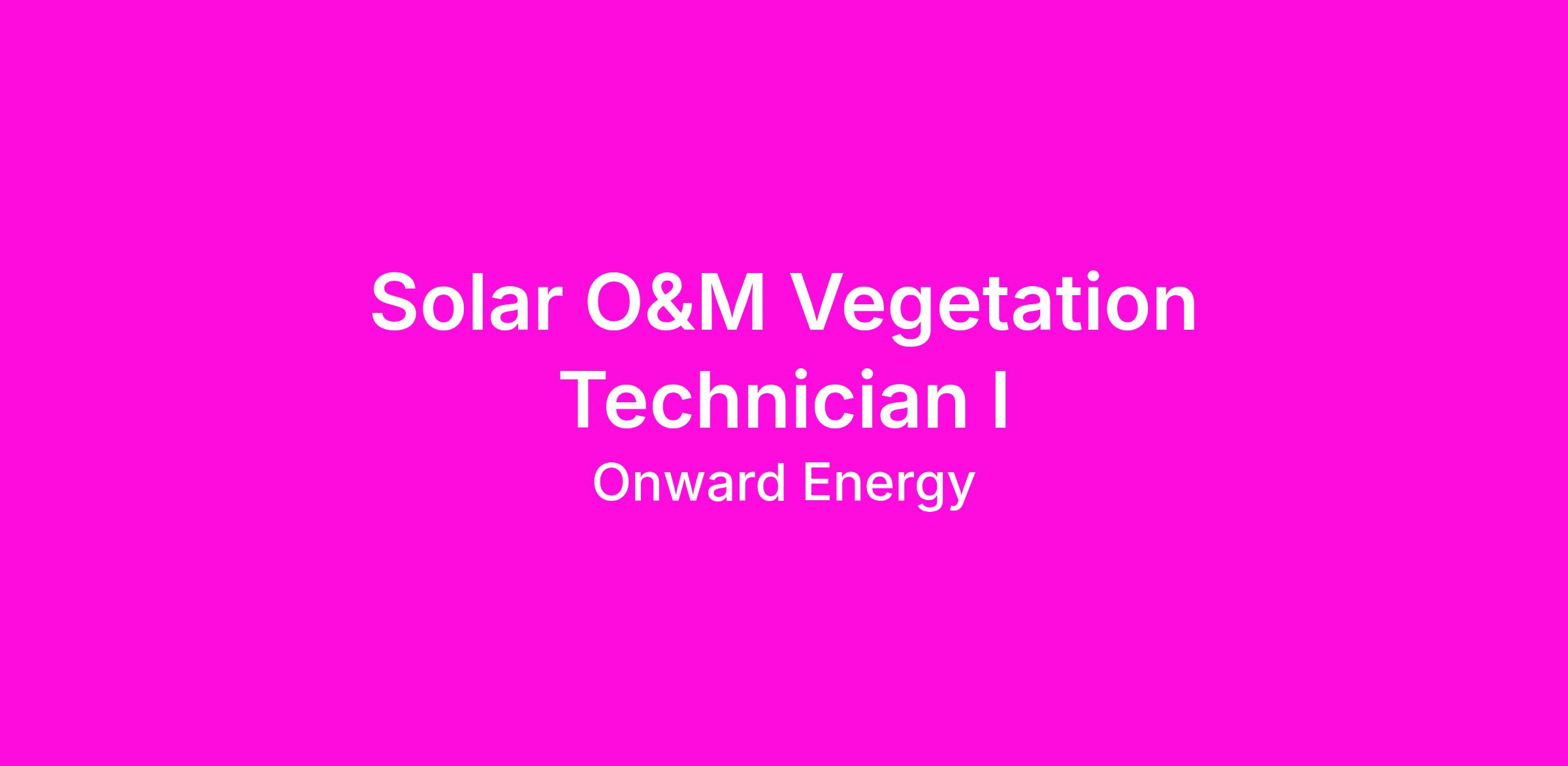 Position Title: Solar O&M Vegetation Technician l