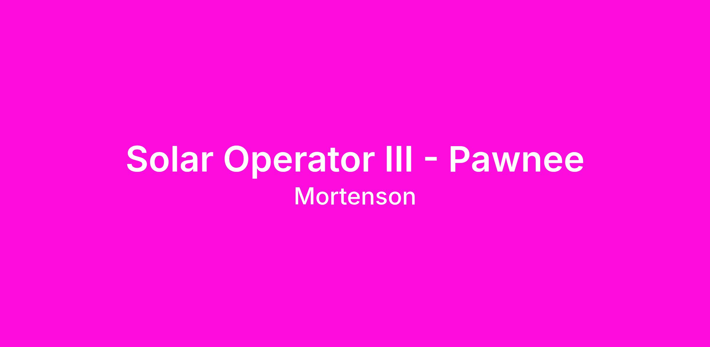 Mortenson is currently seeking a Solar Operator III that will be responsible for operating equipment as directed and specified while adhering to all rules and regulations as mandated by Mortenson safety policies and procedures.