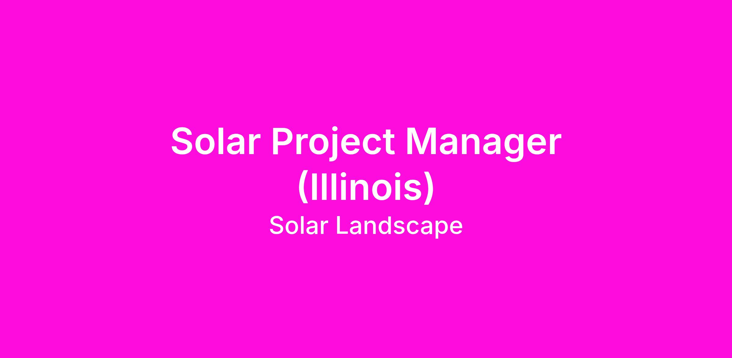 This role is based in Illinois (Greater Chicago area). Solar Landscape is open to providing relocation assistance for qualified candidates who are not currently located in Illinois.