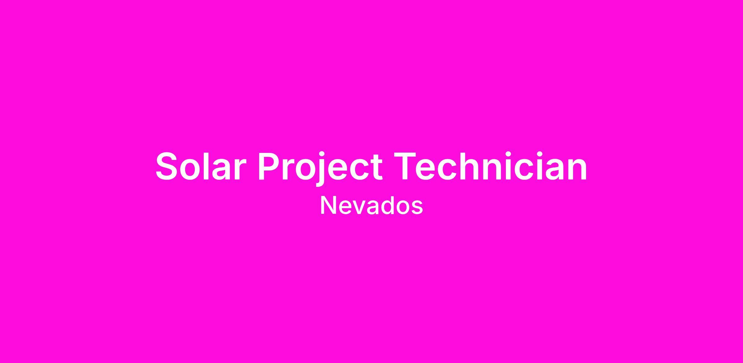 The Solar Project Technician has day-to-day activities both on project sites as well as monitoring of sites remotely through the Nevados Dashboard and compiling reports for distribution among the Nevados team. This is a travel heavy position with greater than 50% travel, and candidates will ideally be based in a region that allows travel easily to our sites. Projects are primarily based in Utah, Nevada, California, with potential to expand to other areas in the near future.