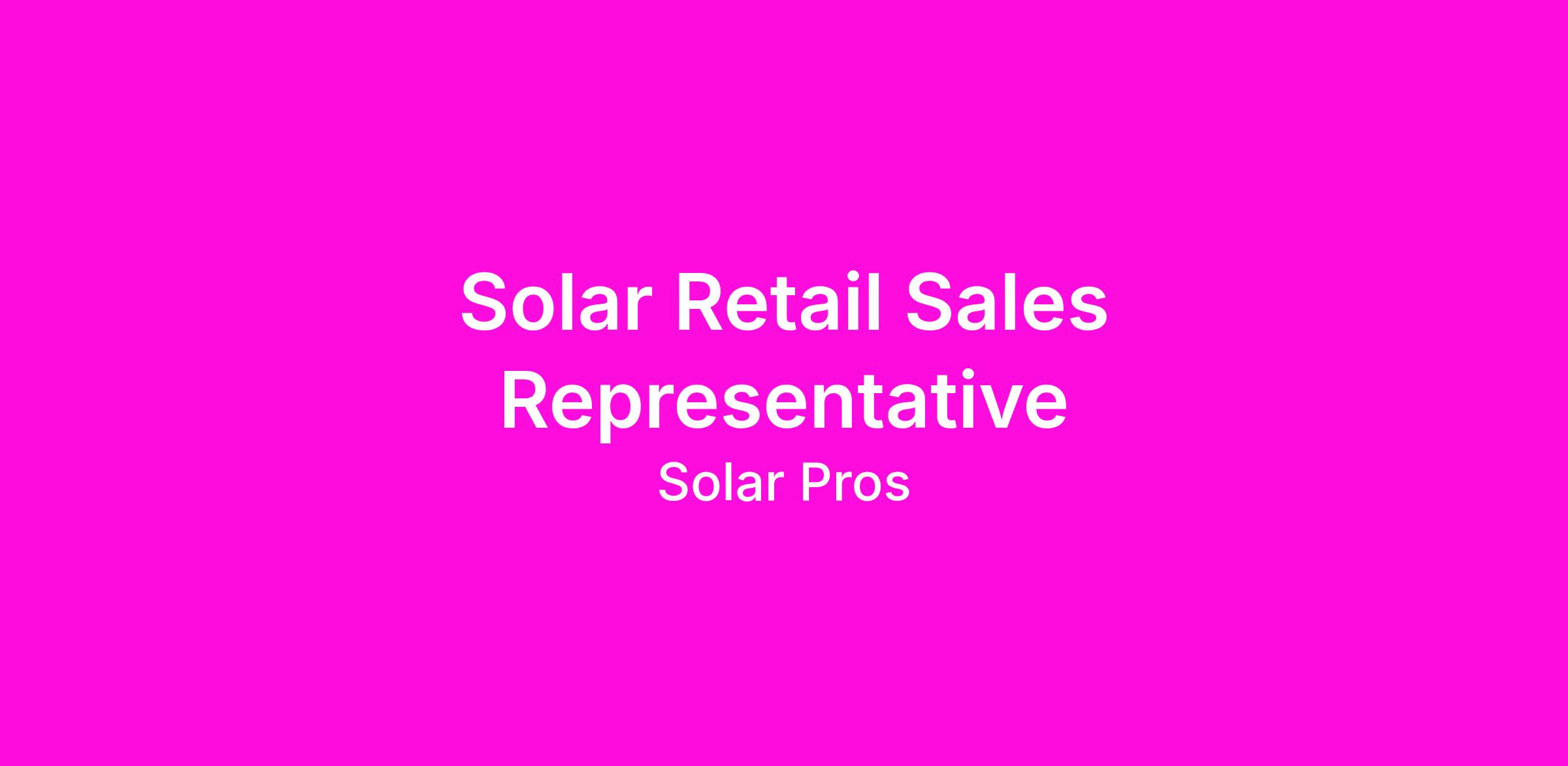 Solar Pros is an Equal Opportunity Employer committed to diversity in the workplace. All qualified applicants will receive consideration without regard to race, color, religion, sex, sexual orientation, national origin, age, disability, protected veteran status, gender identity, or any other protected category. We also consider qualified applicants with criminal histories as permitted by law. If you need reasonable accommodation, please indicate that need in your application.