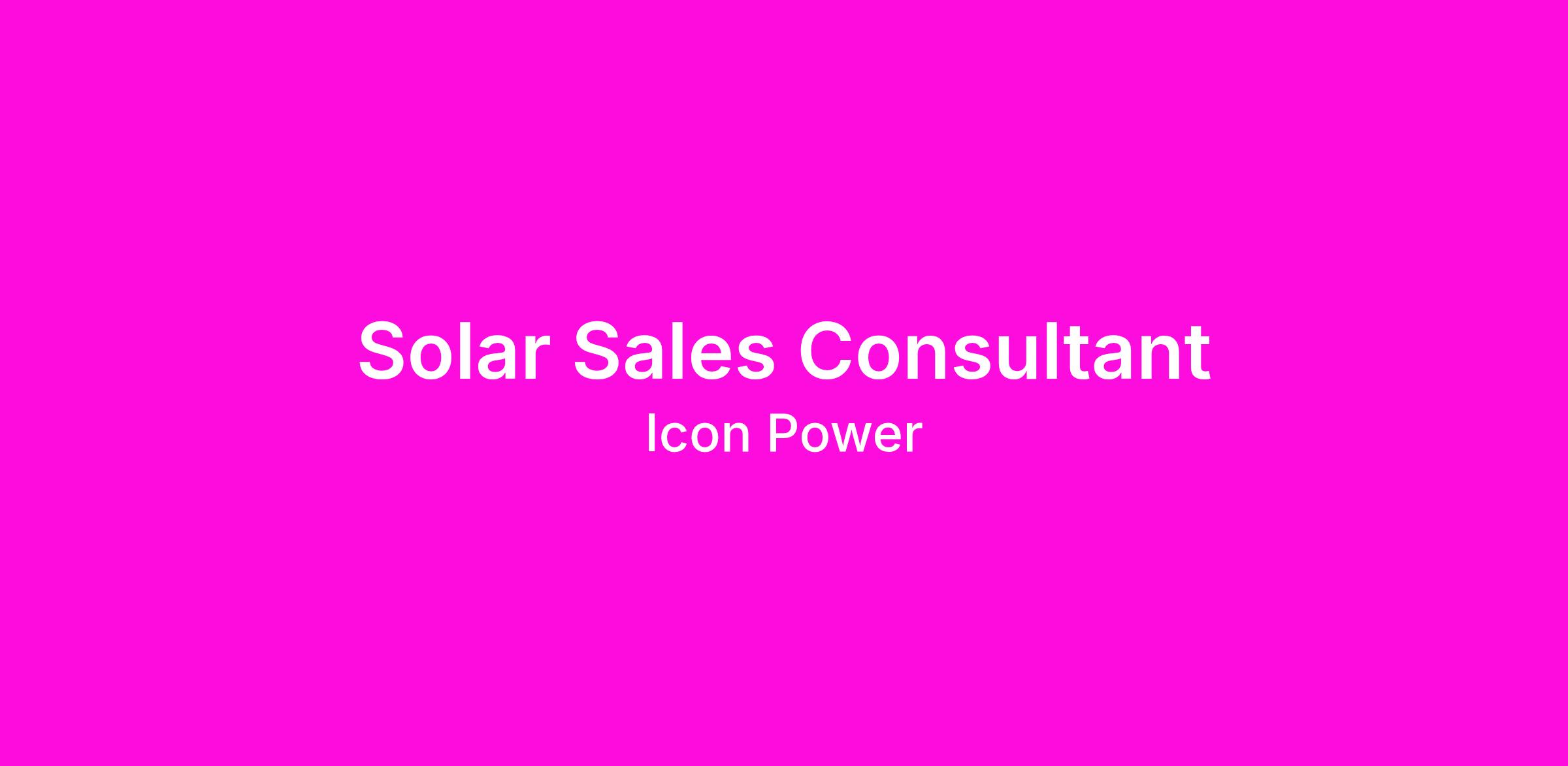 Icon Power is actively hiring experienced Solar Sales Consultants who want to be paid well,