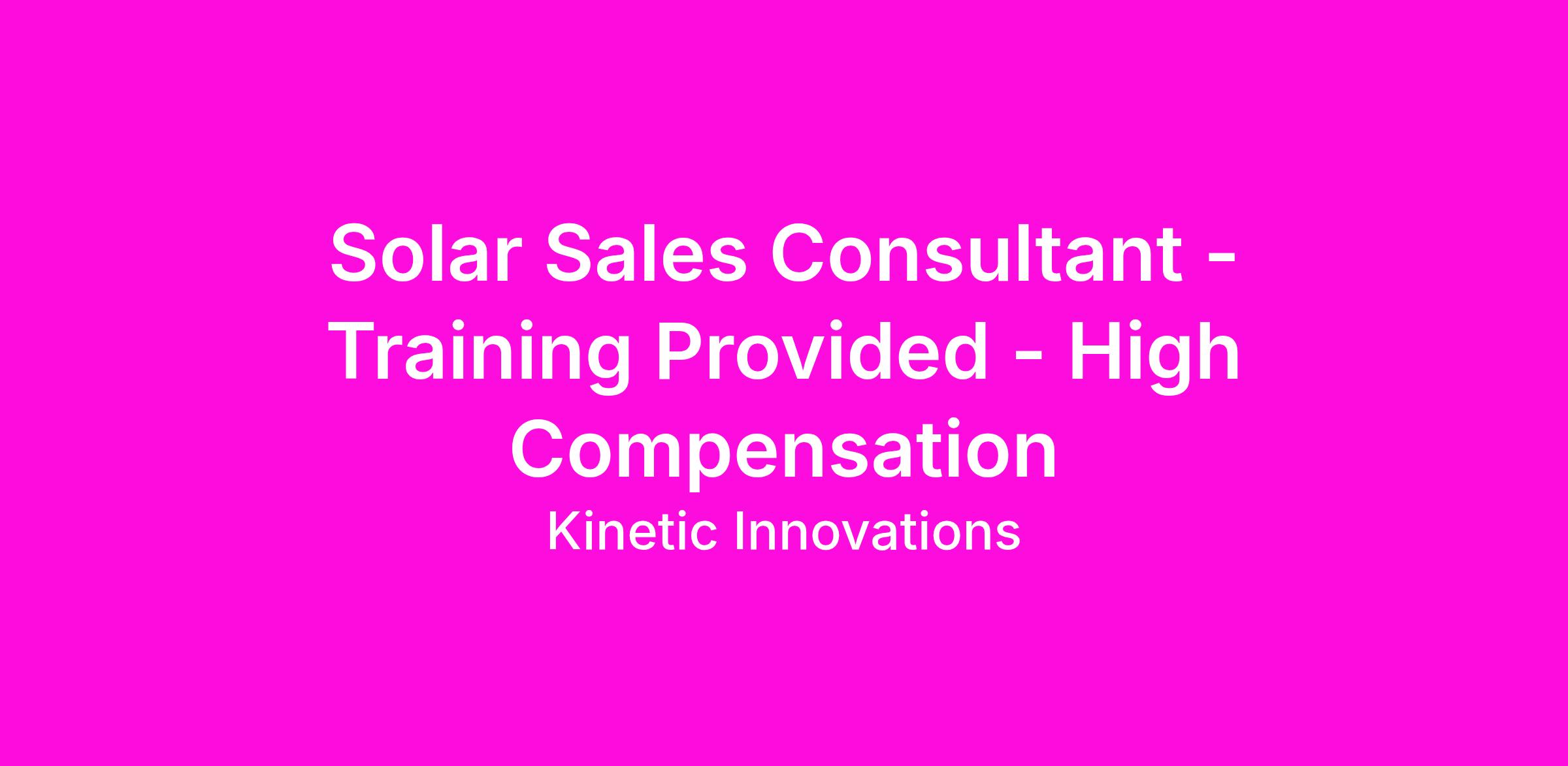 Solar Sales Consultant - Training Provided - High Compensation